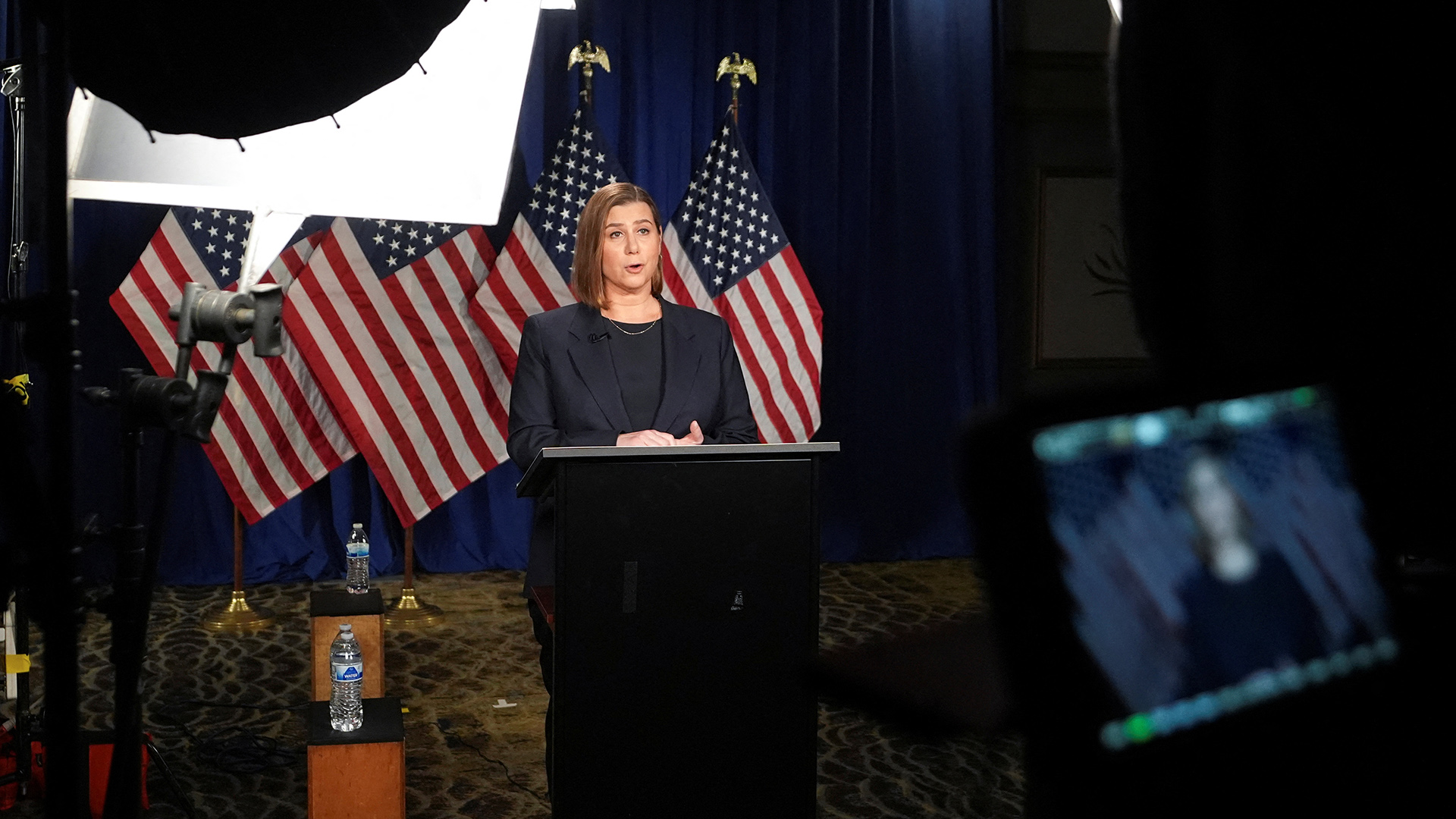 Η Ελίσα Σλότκιν, στέλεχος των Δημοκρατικών και μέλος της Γερουσίας, ήταν το πρόσωπο που σήκωσε το πολιτικό βάρος να απαντήσει εκ μέρους των Δημοκρατικών, στην ομιλία του Ντόναλντ Τραμπ στο Κογκρέσο.