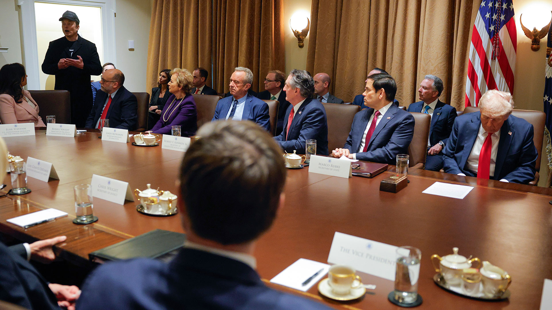Παρών στη συνάντηση ήταν ο Ντόναλντ Τραμπ, ο οποίος, μετά από εντονότατες στιχομυθίες, φάνηκε να υιοθετεί μία προσέγγιση περιοριστική για τον Μασκ.