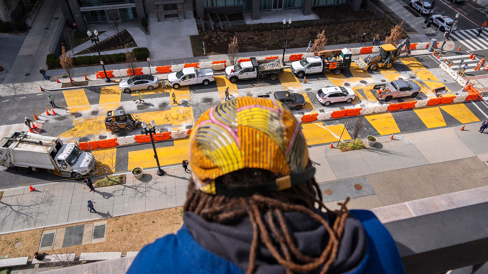 Το όνομα του κινήματος που γιγαντώθηκε το 2020 μετά τον θάνατο του Τζορτζ Φλόιντ, Αφροαμερικανού που σκότωσε λευκός αστυνομικός, ήταν γραμμένο με κίτρινα γράμματα στον δρόμο, όχι μακριά από την έδρα της αμερικανικής προεδρίας.