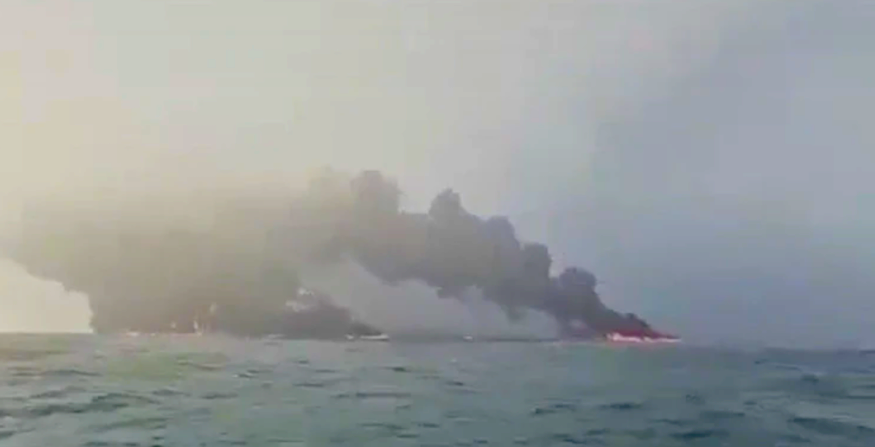 Καπνός συνεχίζει να υψώνεται πάνω από το Solong.