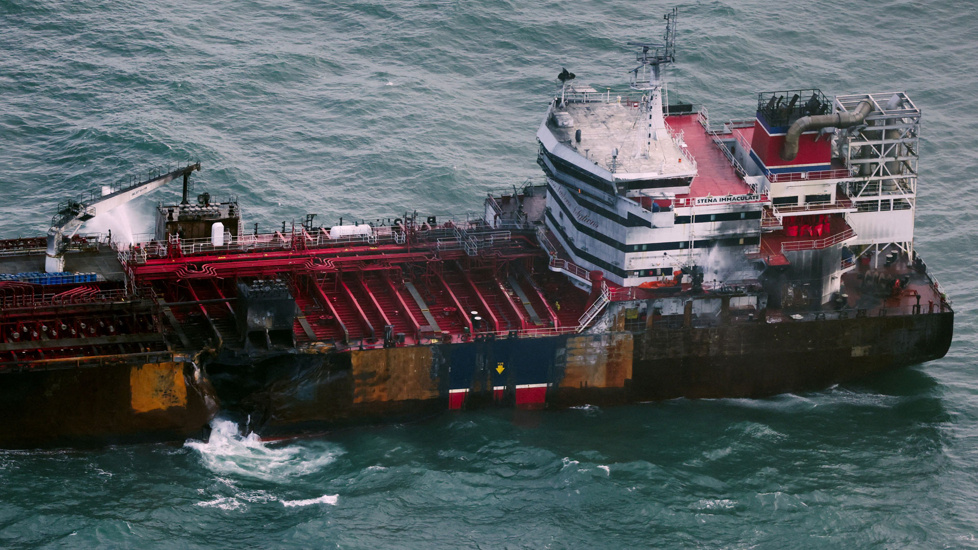 Το Stena Immaculate ήταν αγκυροβολημένο όταν χτυπήθηκε από το μικρότερο Solong προκαλώντας μεγάλη φωτιά και εκρήξεις.