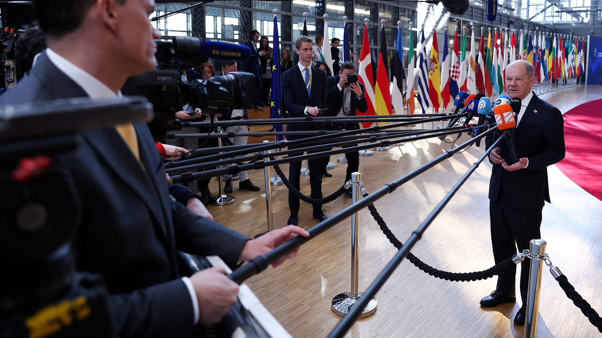 «Πρέπει να συνεχίσουμε τη στήριξή μας με σαφή θέση ότι μια δίκαιη ειρήνη πρέπει να είναι δυνατή για την Ουκρανία», τόνισε ο απερχόμενος καγκελάριος, προσερχόμενος στη σύνοδο κορυφής της Ε.Ε.