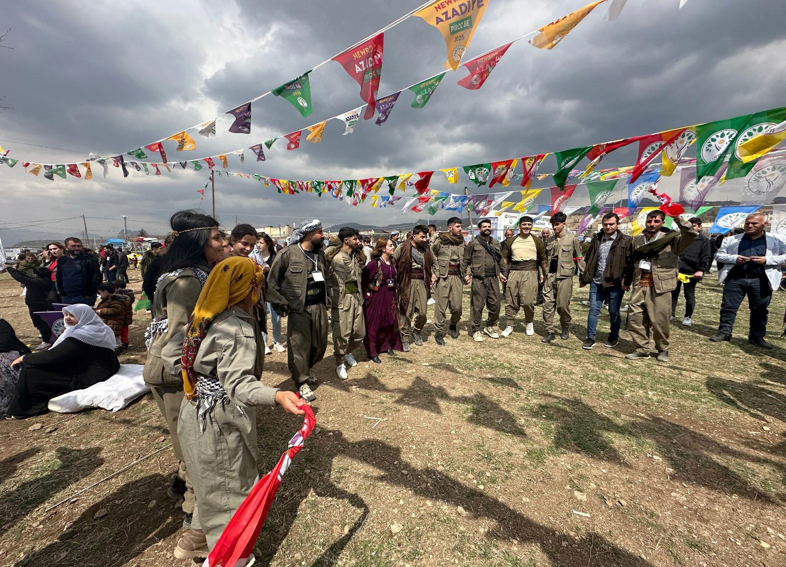 Σε κοντινή απόσταση, ενώνοντας τα χέρια τους, πολλοί χόρευαν κουρδικά τραγούδια, φωνάζοντας συνθήματα υπέρ του Αμπντουλάχ Οτσαλάν, του φυλακισμένου ηγέτη του PKK.