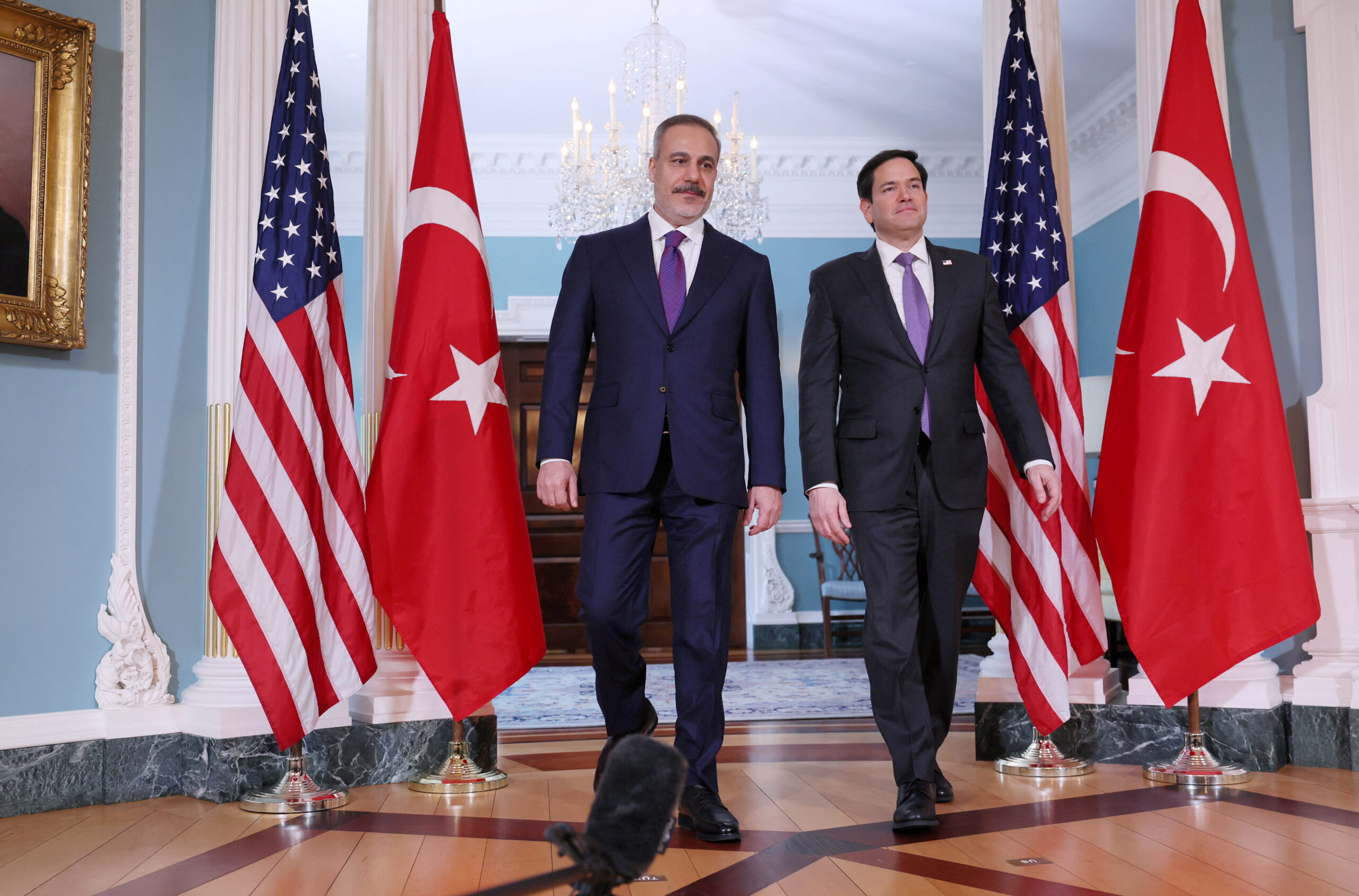 «Ο υπουργός (Εξωτερικών) εξέφρασε ανησυχίες όσον αφορά τις πρόσφατες συλλήψεις και διαδηλώσεις στην Τουρκία», αναφέρει η τελευταία φράση του ενημερωτικού σημειώματος που δόθηκε στη δημοσιότητα από την εκπρόσωπό του Τάμι Μπρους μετά τη συνάντηση του Μάρκο Ρούμπιο με τον Χακάν Φιντάν.