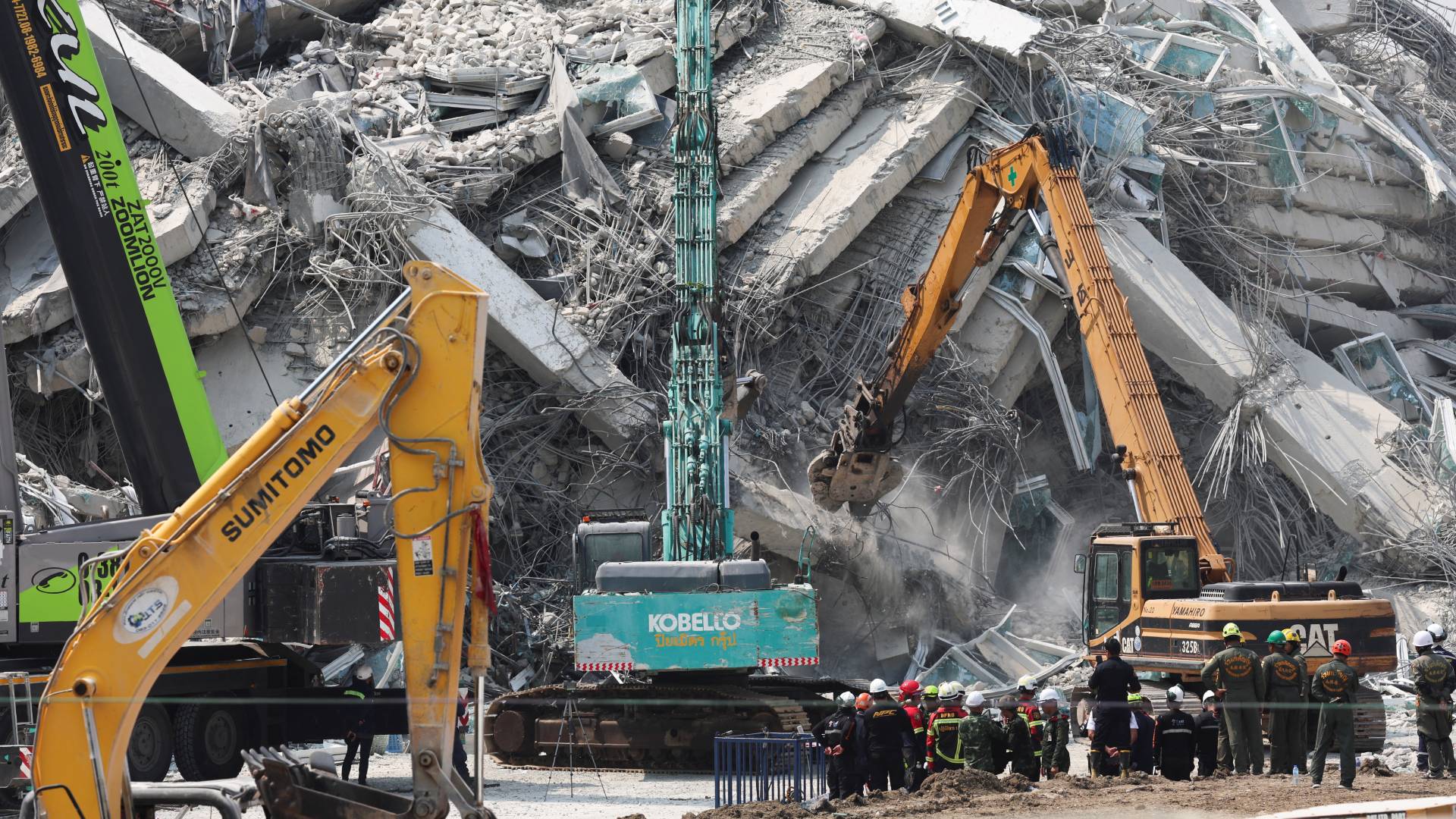 Οι αρχές χρησιμοποίησαν εκσκαφείς, drones και ειδικά σκυλιά στην προσπάθεια να βγάλουν τους 30 ανθρώπους είχαν εγκλωβιστεί εκεί, περιλαμβανομένων τουλάχιστον 15 που εξακολουθούν να δείχνουν σημεία ζωής.