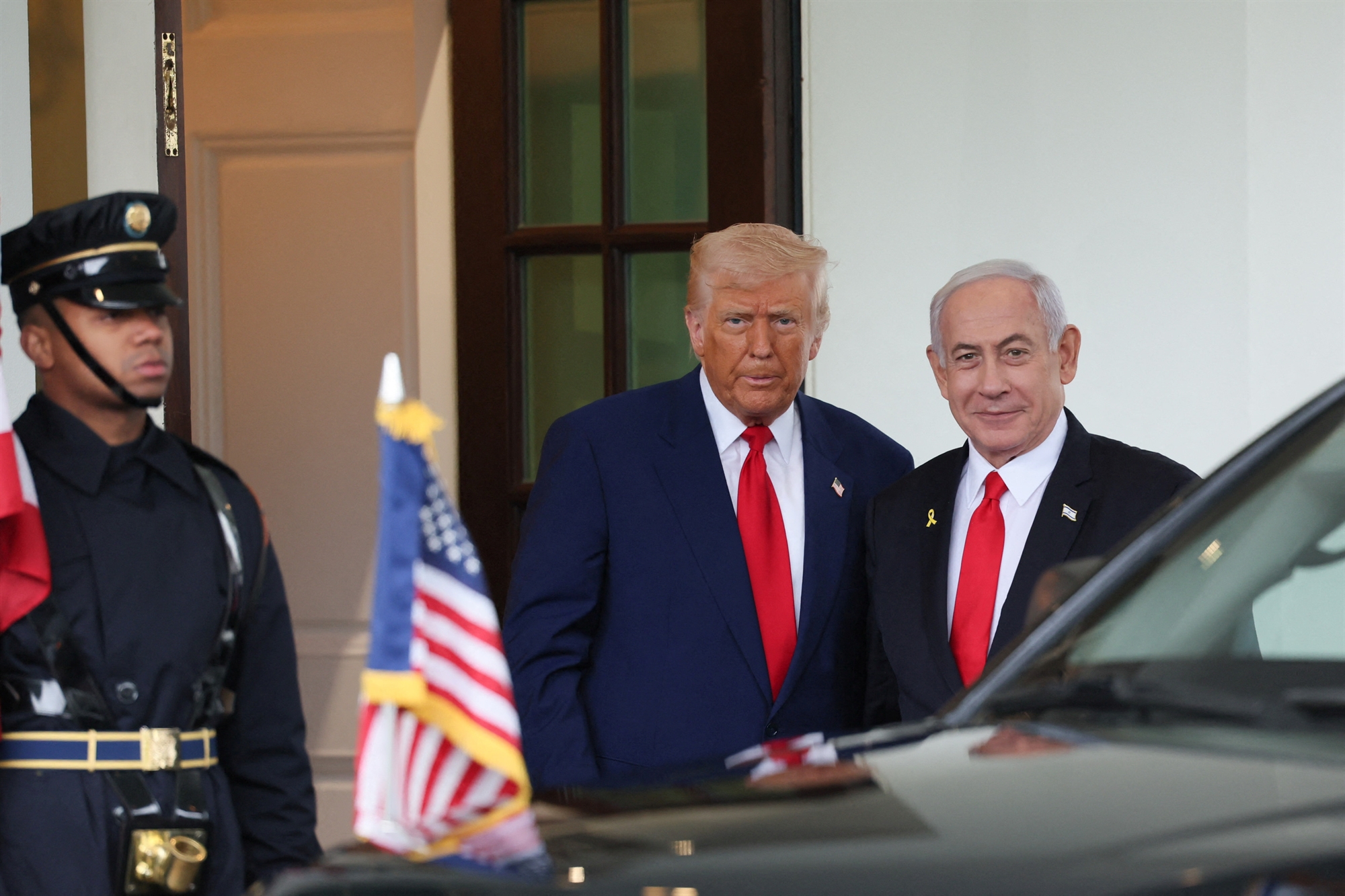 Λίγο πριν από τη συνάντηση Τραμπ – Νετανιάχου, ο πρόεδρος της Γαλλίας Εμανουέλ Μακρόν, ο Αιγύπτιος ομόλογός του Αμπντέλ Φατάχ αλ Σίσι και ο βασιλιάς της Ιορδανίας Αμπντάλα επικοινώνησαν τηλεφωνικά με τον Αμερικανό πρόεδρο από το Κάιρο, όπου είχαν τριμερή σύσκεψη. Οι τρεις συζήτησαν σχέδιο για άμεση εκεχειρία στη Γάζα και τόνισαν την ανάγκη πλήρους αποκατάστασης της ανθρωπιστικής βοήθειας για τους Παλαιστινίους και απελευθέρωσης όλων των Ισραηλινών ομήρων και των Παλαιστινίων κρατουμένων, αλλά και της δημιουργίας προϋποθέσεων για την εφαρμογή της λύσης των δύο κρατών.