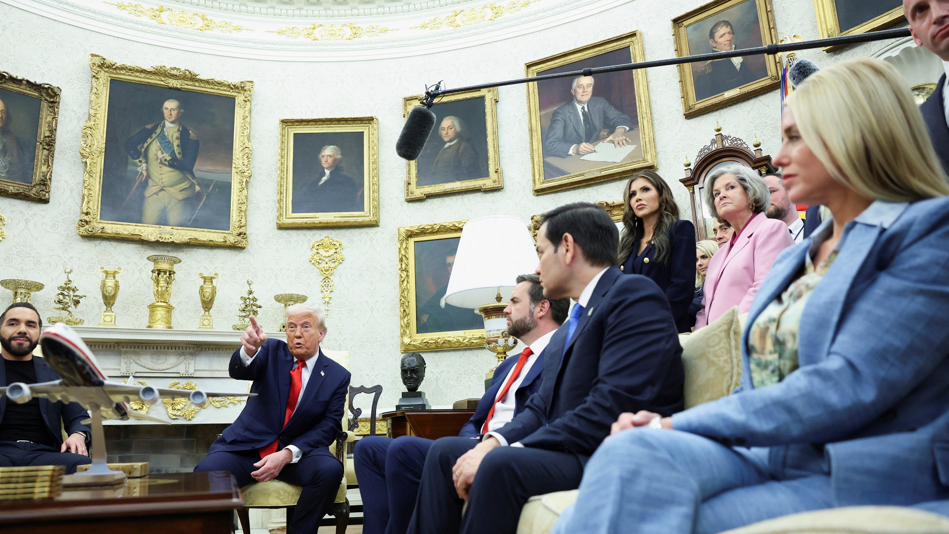 «Δεν τους αρέσει να τους βγάζουν επειδή θεωρώ πως μισούν τη χώρα μας, και είναι ντροπή», πρόσθεσε, προς έκπληξη των παρισταμένων που περιλάμβαναν τον αντιπρόεδρο Τζ. Ντ. Βανς και τον υπουργό Εξωτερικών Μάρκο Ρούμπιο.