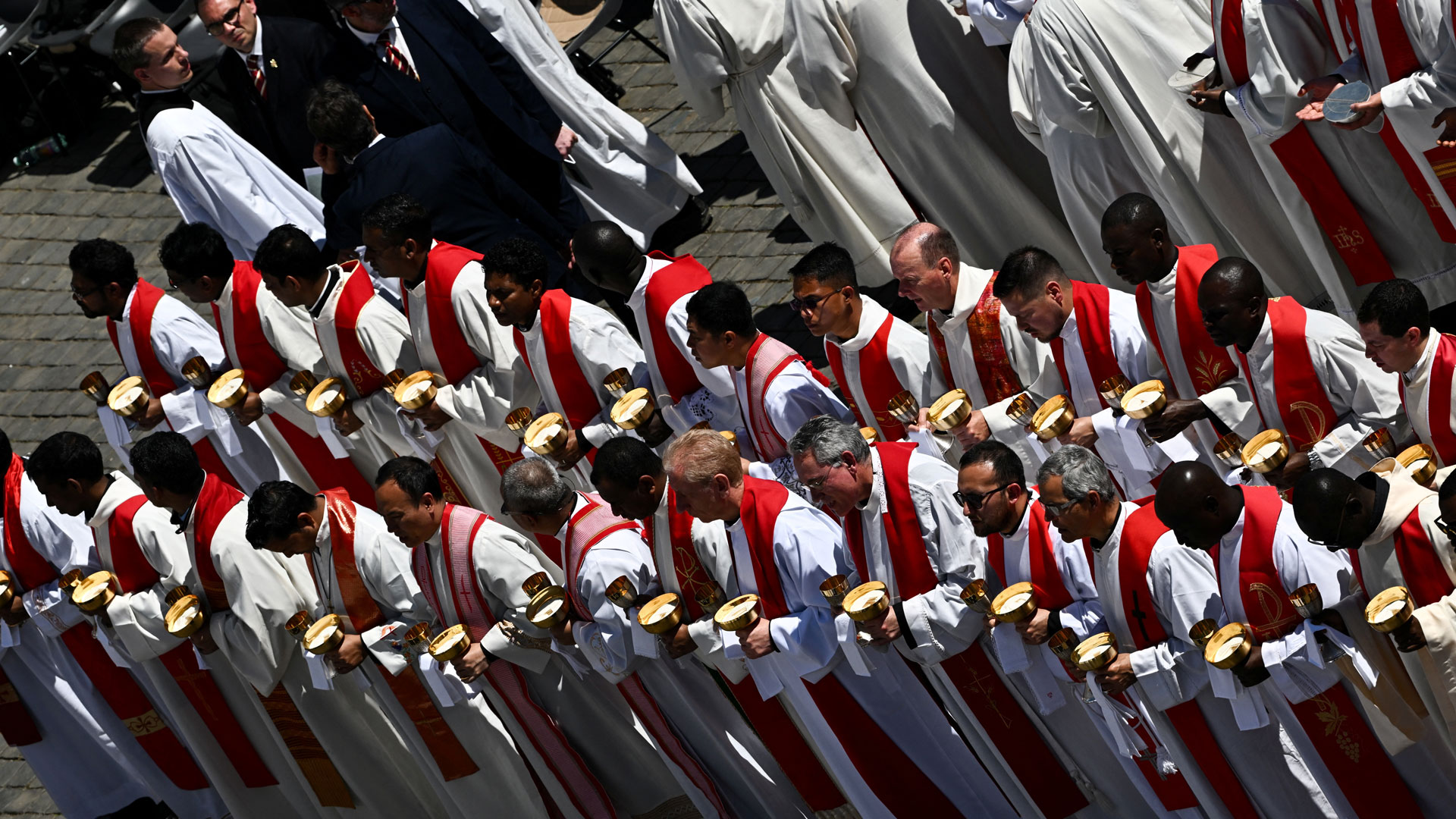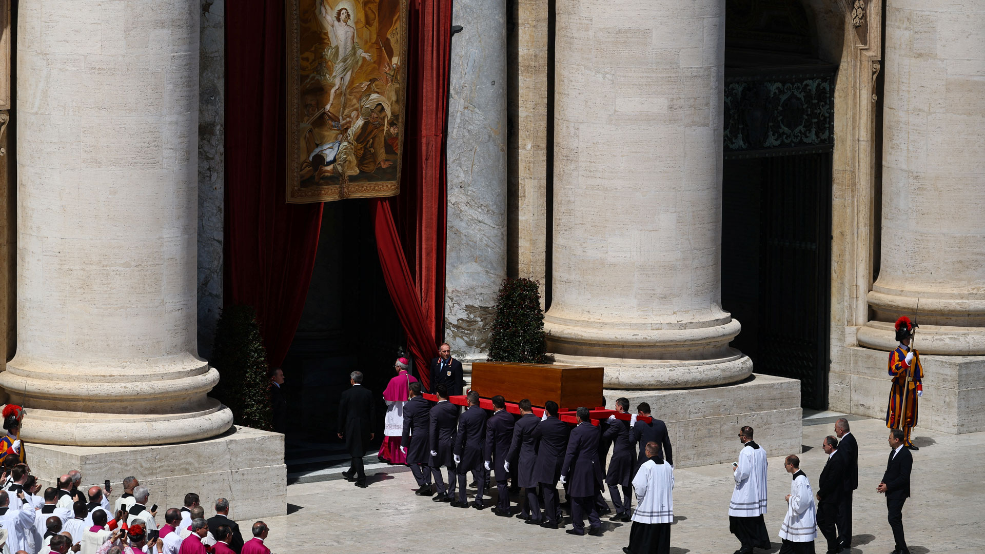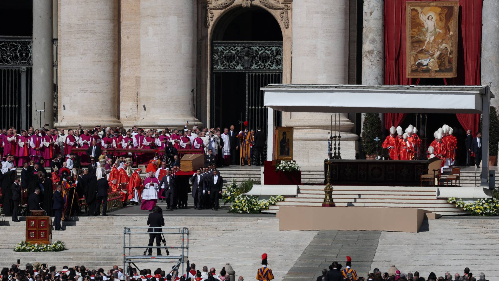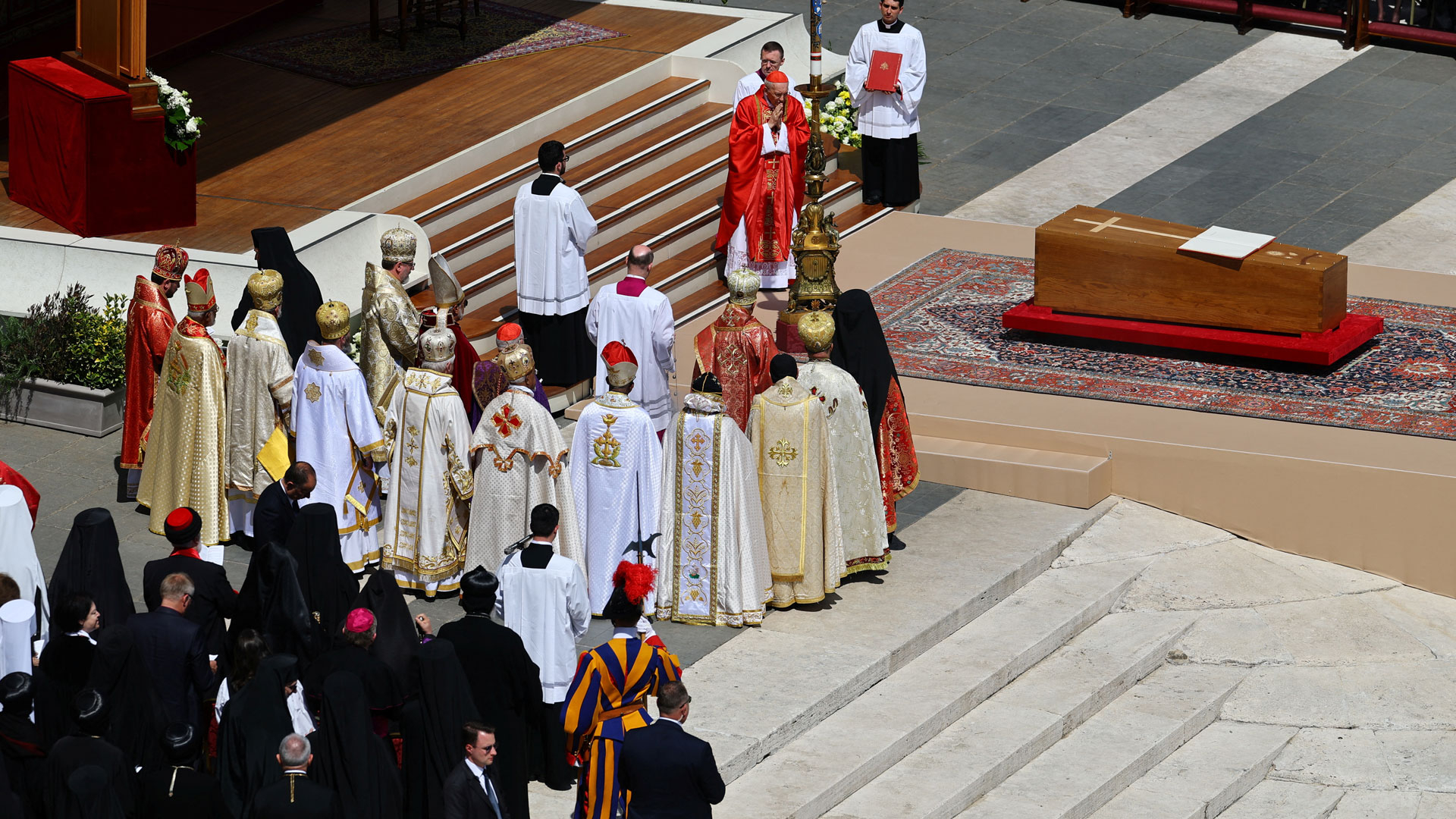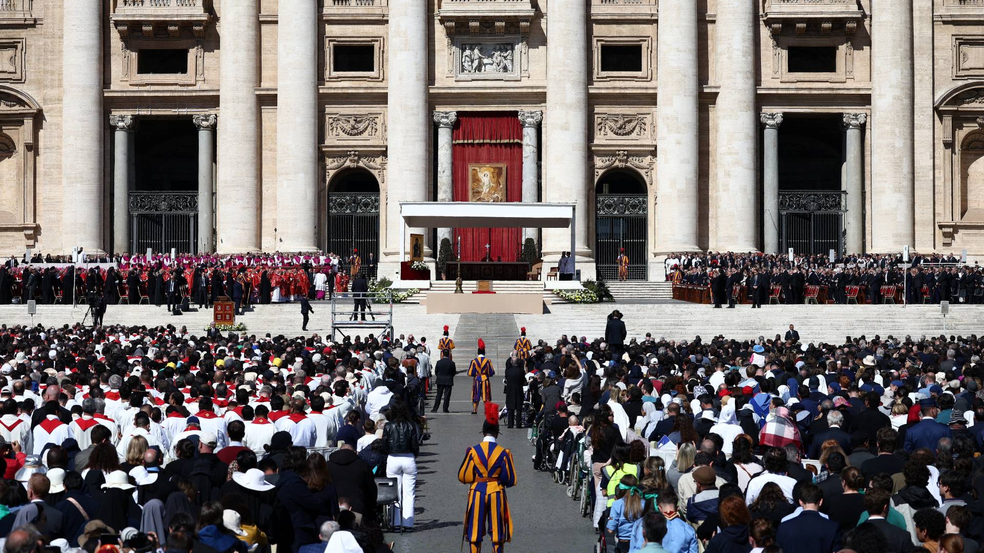 Το Χριστός Ανέστη εψάλη στη Βασιλική του Αγίου Πέτρου, λίγο πριν ολοκληρωθεί η κηδεία του πάπα Φραγκίσκου. Φέτος, το Πάσχα Καθολικών και Ορθοδόξων συνέπεσε, αλλά αυτό ήταν και μια ένδειξη και αναφορά στην επιθυμία του Φραγκίσκου για κοινό εορτασμό του Πάσχα. Μετά ακολούθησε η λειτουργία εις κεκοιμημένους.