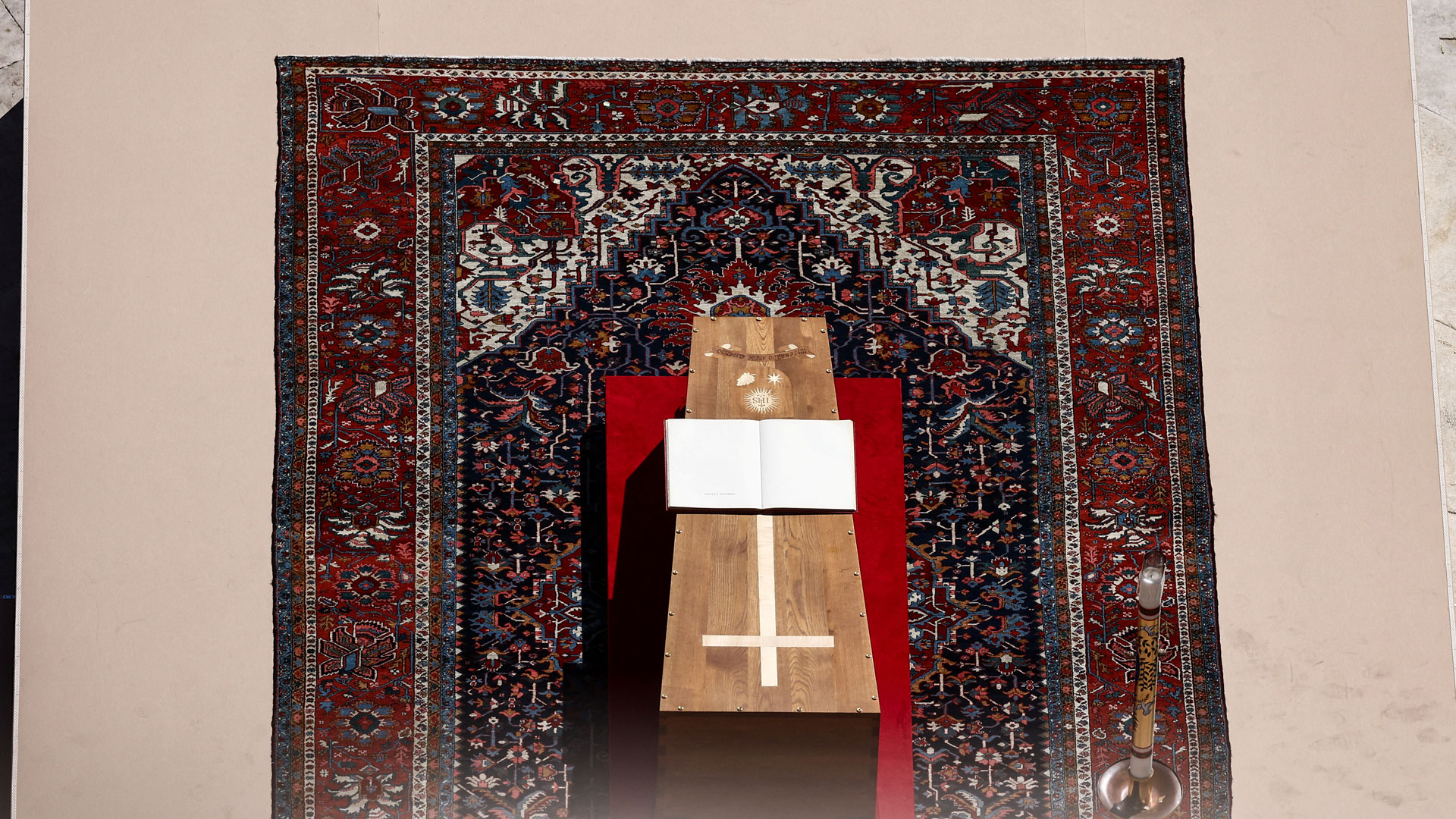 Ο Οικουμενικός Πατριάρχης, ο «Αδελφός εν Χριστώ» του εκλιπόντα ποντίφικα, καθεται, βάσει του πρωτόκολλου του Βατικανού, πολύ κοντά στο φέρετρο.