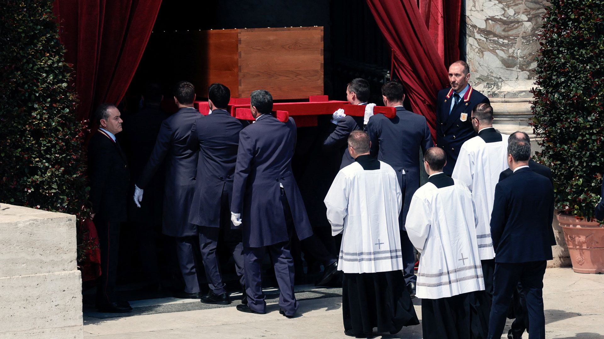 Η κηδεία του πάπα Φραγκίσκου ολοκληρώθηκε πριν από λίγο. Η νεκρώσιμη τελετή διήρκεσε δύο ώρες και ένα τέταρτο. Οι καμπάνες ηχούν πένθιμα, ενώ ξεκίνησε η πομπή για να μεταφερθεί το φέρετρο του Αργεντινού ποντίφικα στη Βασιλική της Σάντα Μαρία Ματζόρε.