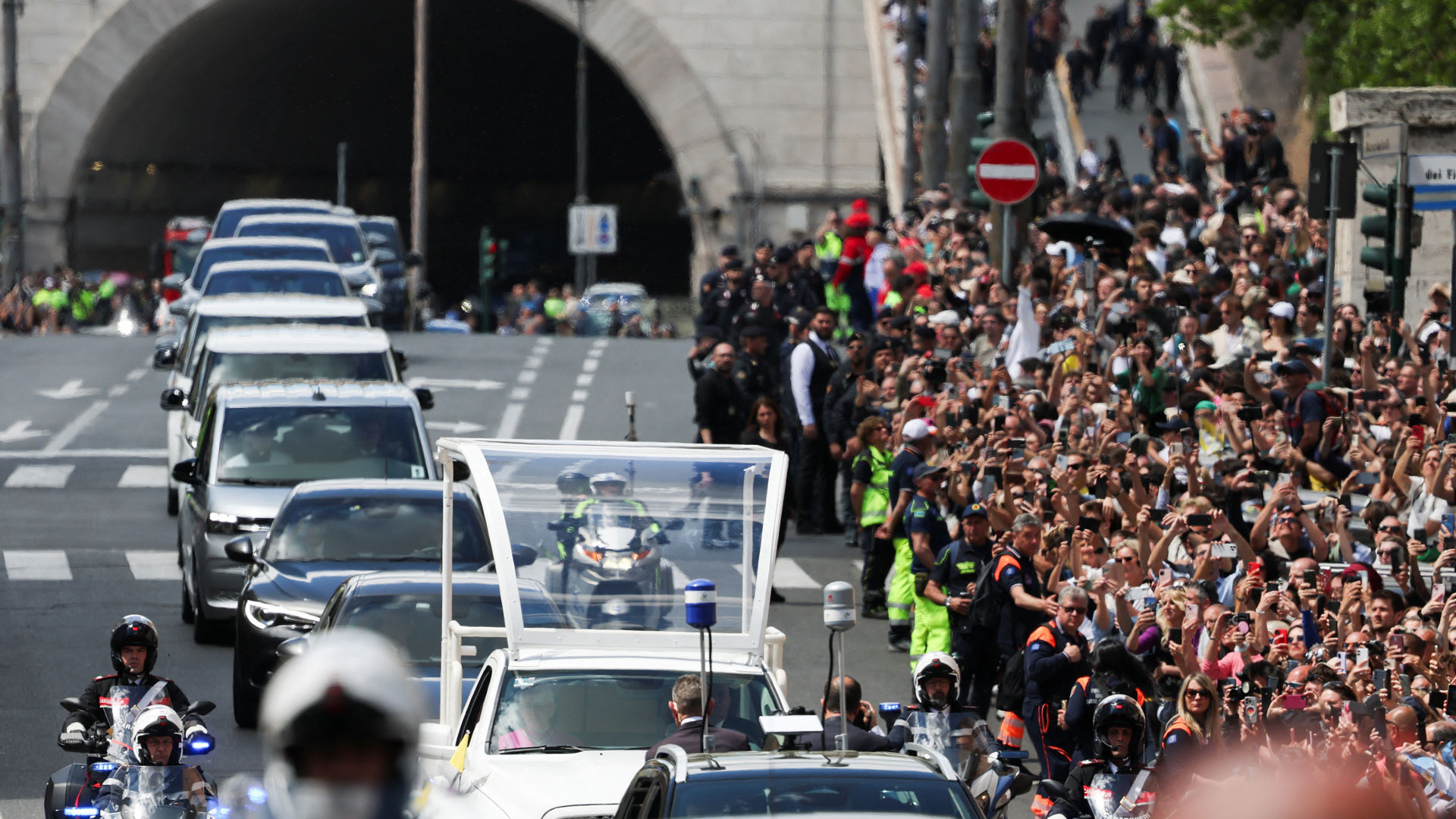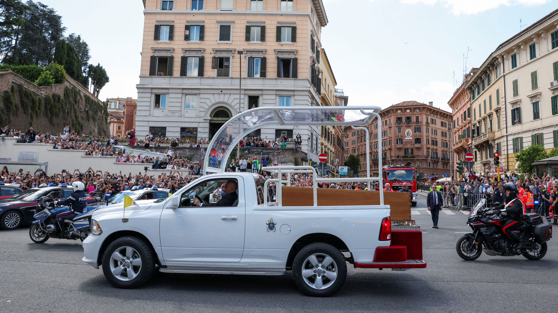 - 13:35Σε εξέλιξη η νεκρική πομπή στους δρόμους της Ρώμης