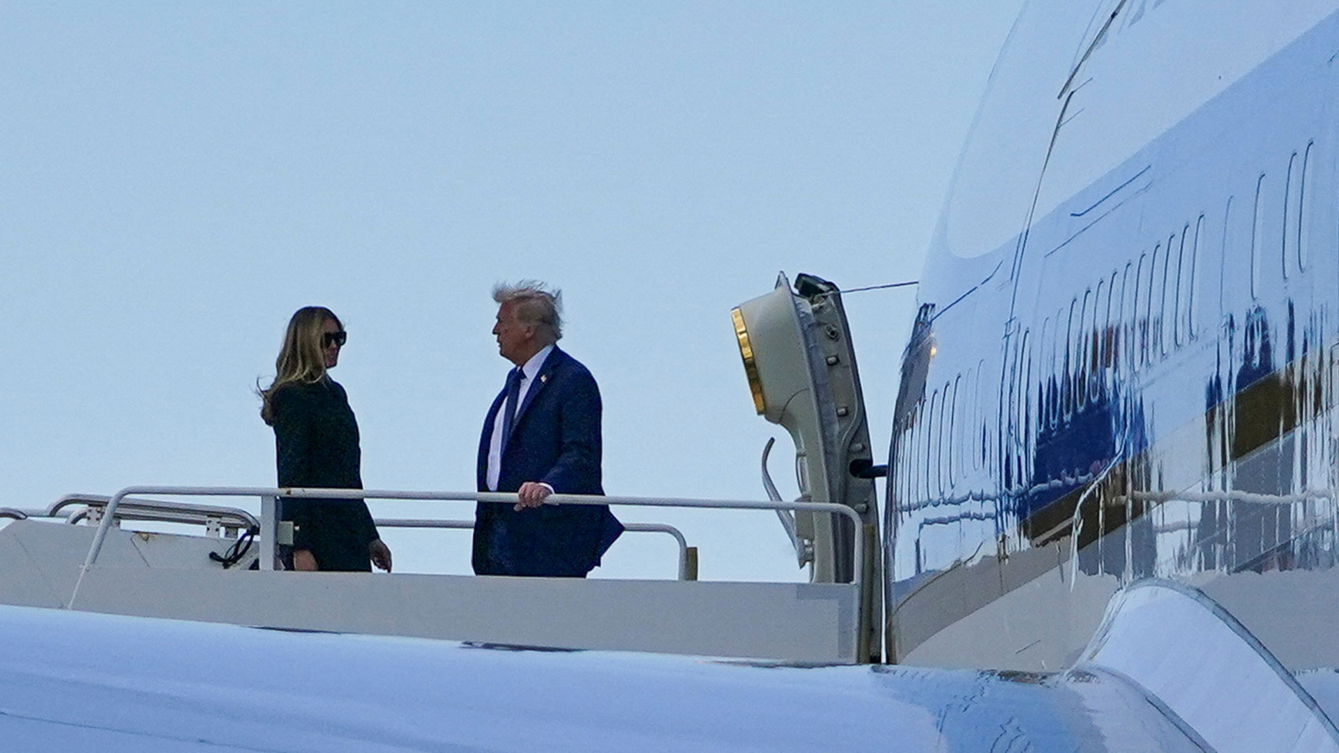 Ο πρόεδρος των ΗΠΑ Ντόναλντ Τραμπ και η πρώτη κυρία επιβιβάζονται στο Air Force One καθώς αναχωρούν από τη Ρώμη, αφού παρευρέθηκαν στην εξόδιο ακολουθία του Πάπα Φραγκίσκου.