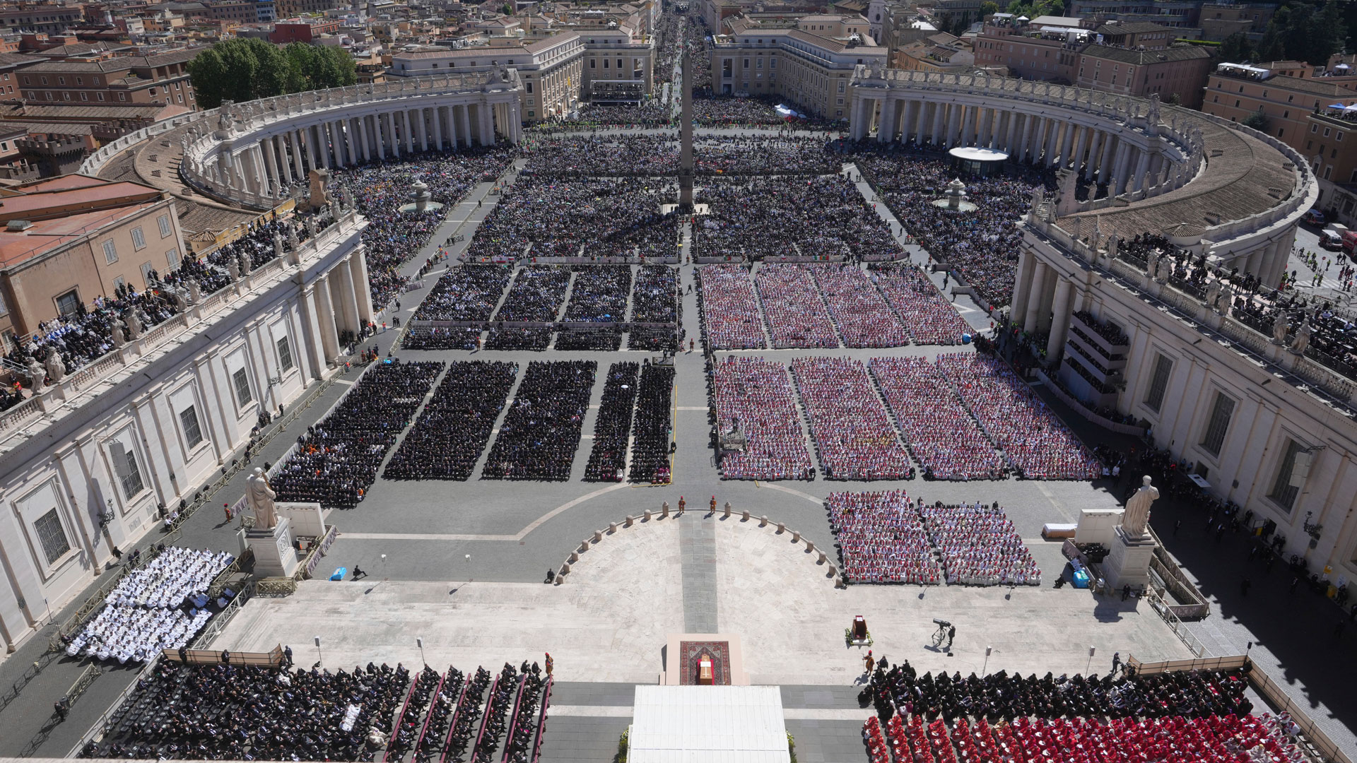 Οπως αναφέρει το ΑΠΕ - ΜΠΕ, υπολογίζεται ότι οι πιστοί έχουν ξεπεράσει τις 150.000. Στις θέσεις των επισήμων βρίσκονται, μεταξύ άλλων, ο Αμερικανός πρόεδρος Ντόναλντ Τραμπ, ο Γάλλος πρόεδρος Εμάνουελ Μακρόν, ο Ουκρανός πρόεδρος Βολοντίμιρ Ζελένσκι, ο πρωθυπουργός Κυριάκος Μητσοτάκης, η πρόεδρος της Ευρωπαϊκής Επιτροπής Ούρσουλα φον ντερ Λάιεν.