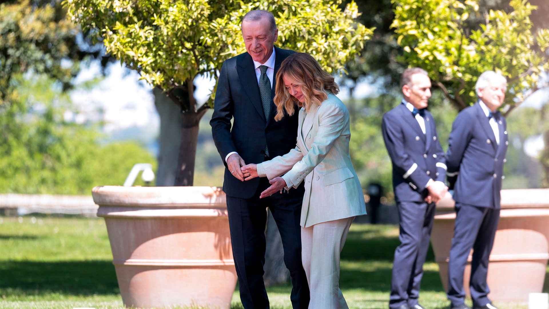 Από την πλευρά της, η Μελόνι δήλωσε ότι οι σχέσεις μεταξύ Ιταλίας και Τουρκίας είναι «άριστες» και πρόσθεσε πως «η σχέση μας υπερβαίνει κατά πολύ τις οικονομικές σχέσεις. Στο ευρωμεσογειακό σενάριο, είμαστε σύμμαχες χώρες στο πλαίσιο της Ατλαντικής Συμμαχίας. Ο στόχος μας για τον όγκο συναλλαγών είναι 40 δισ. δολάρια. Οι μεγάλες τουρκικές εταιρείες θέλουν να επενδύσουν περισσότερο στην Ιταλία».