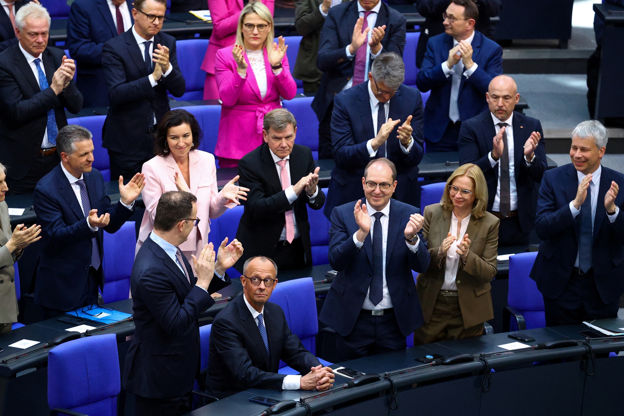 Εμφανώς ανακουφισμένος μετά την επεισοδιακή έγκριση της υποψηφιότητάς του, ο Μερτς μετέβη στο προεδρικό μέγαρο Bellevue, όπου ορκίστηκε ενώπιον του Φρανκ Βάλτερ Σταϊνμάγερ. Από τους πρώτους που έστειλαν συγχαρητήρια μηνύματα ήταν ο Ουκρανός πρόεδρος Βολοντίμιρ Ζελένσκι, ο Γάλλος ομόλογός του Εμανουέλ Μακρόν και η επικεφαλής της Κομισιόν, Ούρσουλα φον ντερ Λάιεν. Παρά την καθυστέρηση της διαδικασίας, αργά χθες το βράδυ συγκλήθηκε το πρώτο υπουργικό συμβούλιο. «Αυτό που μετράει είναι πως ο Φρίντριχ Μερτς έγινε ο δέκατος καγκελάριος της Ομοσπονδιακής Γερμανίας. Germany is back (Η Γερμανία επέστρεψε)», διακήρυξε στην πλατφόρμα Χ ο εγγονός του καγκελαρίου της επανένωσης των δύο Γερμανιών, Χέλμουτ Κολ, Γιοχάνες Φόλκσμαν.