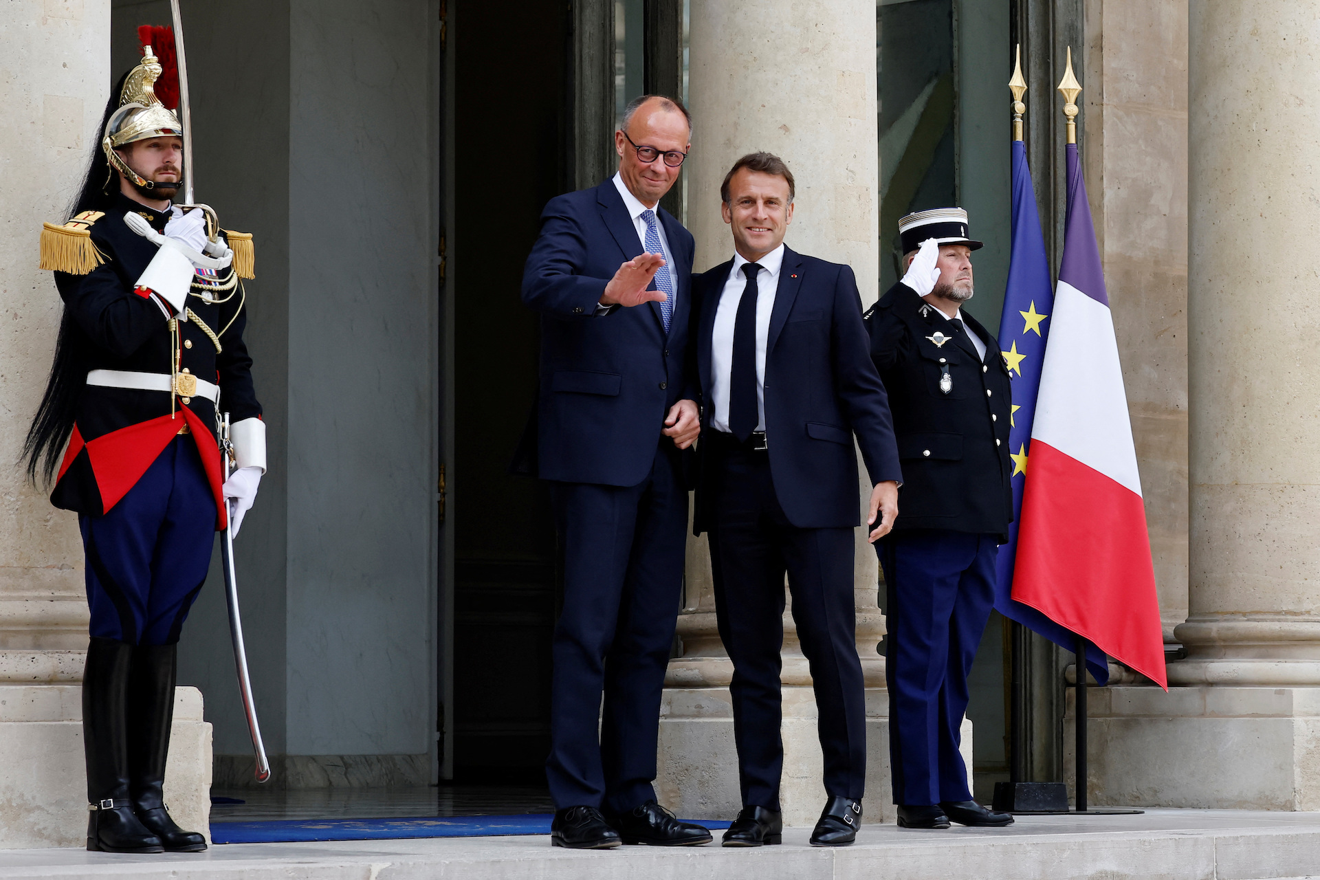 Ο πρόεδρος της Γαλλίας, Εμανουέλ Μακρόν, δήλωσε, έχοντας στο πλευρό τον νέο καγκελάριο της Γερμανίας Φρίντριχ Μερτς τον οποίο υποδέχθηκε στο Παρίσι, ότι επιθυμεί την αναβίωση των «γαλλογερμανικών αντανακλαστικών», τον συστηματικό συντονισμό των ενεργειών των δύο χωρών και την από κοινού αντιμετώπιση των προβλημάτων που αντιμετωπίζει η Ευρώπη.