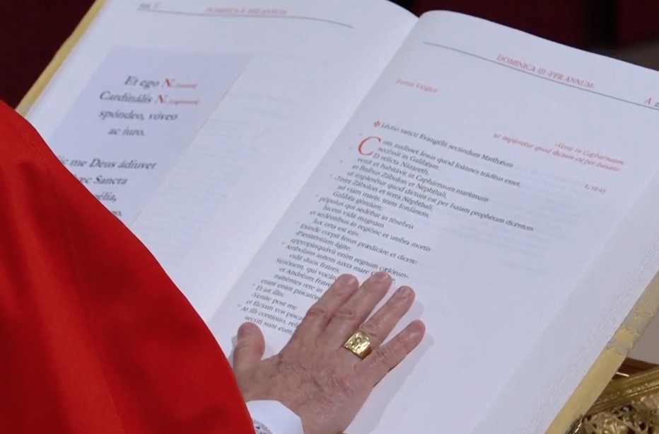 Κάθε καρδινάλιος αγγίζει το βιβλίο με τον ορκό, δηλώνει το όνομά του και στη συνέχεια λέει: «Υπόσχομαι, δεσμεύομαι και ορκίζομαι».