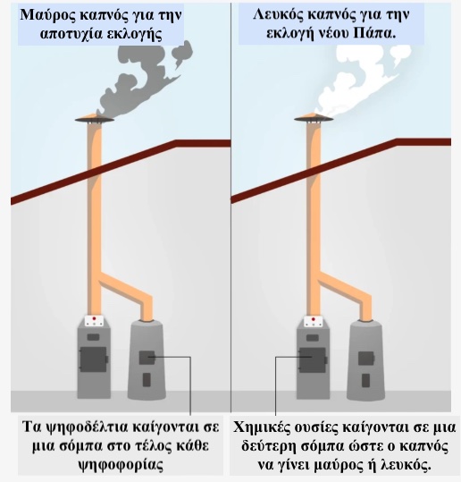 Πραγματοποιούνται δυο ψηφοφορίες την ημέρα και απαιτούνται τα δυο τρίτα των ψήφων, για να μπορέσει να βγει άσπρος καπνός από την καπνοδόχο της Καπέλα Σιξτίνα.