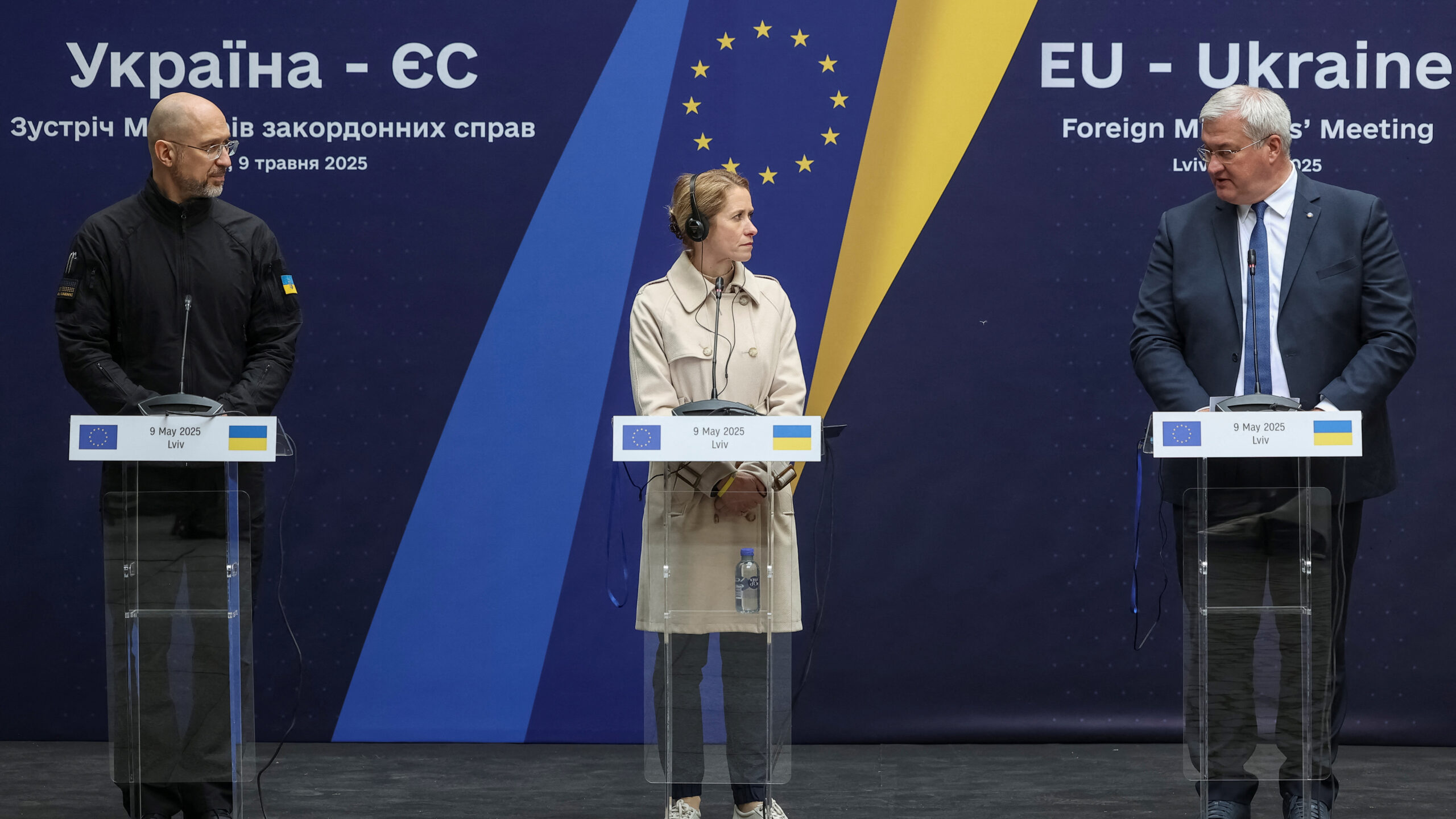 Παρόντες ήταν οι ο υπουργός Εξωτερικών της Ουκρανίας, Άντριι Σιμπίχα και ο πρωθυπουργός της χώρας, Ντένις Σμίχαλ, καθώς και οι υπουργοί Εξωτερικών της ΕΕ που ταξίδεψαν στο Λβιβ, μετά την άτυπη Σύνοδο που είχαν χθες, Πέμπτη, στη Βαρσοβία.