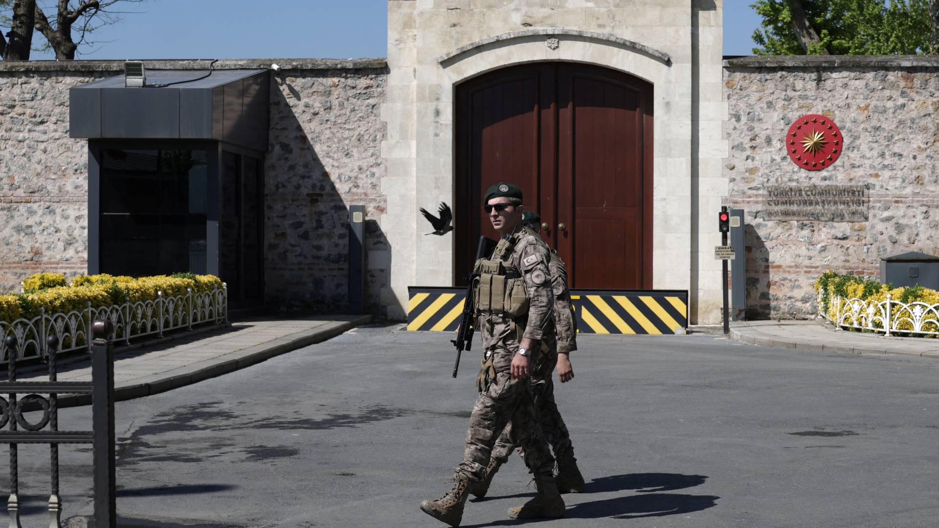 - 14:58Στρατιωτικό προσωπικό έξω από τα γραφεία της Τουρκικής Προεδρίας στο Ντολμά Μπαχτσέ, στην Κωνσταντινούπολη
