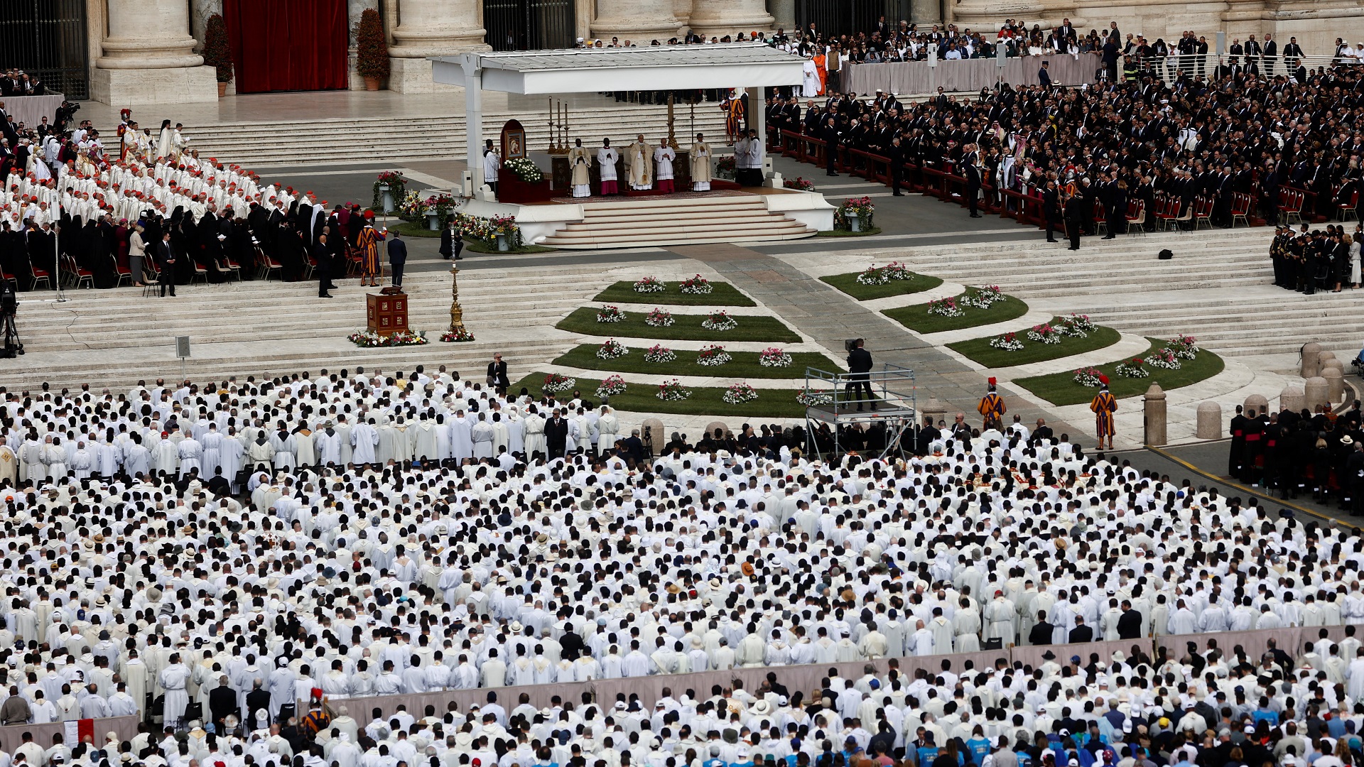 Στην περιοχή γύρω από τον ναό του Αγίου Πέτρου έχουν συρρεύσει, συνολικά, πάνω από 250.000 πιστοί ενώ οι ξένες αντιπροσωπείες που θα παραστούν στην τελετή, ξεπερνούν τις 150.