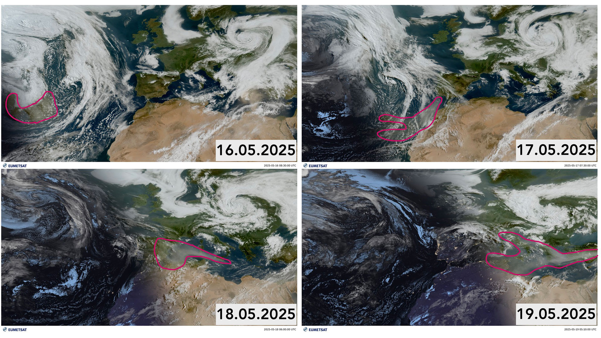 Στις φωτογραφίες που ανέβασε ο ερευνητής φαίνεται ο καπνός να περνά πάνω από τον Ατλαντικό στις 16 Μαΐου, να φτάνει στις δυτικές ακτές της Β. Αφρικής στις 17 Μαΐου, και στη δυτική Μεσόγειο μία ημέρα αργότερα, διανύοντας απόσταση μεγαλύτερη των 10.000 χλμ. προτού καταλήξει πάνω από την Ανατολική Μεσόγειο και την Ελλάδα τη Δευτέρα.