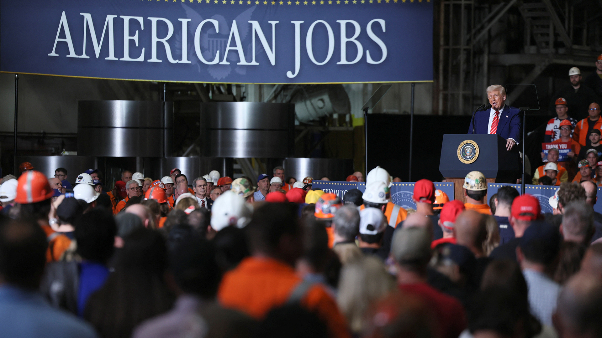 «Θα επιβάλλουμε αύξηση 25%. Θα αυξήσουμε από το 25% στο 50% τους τελωνειακούς δασμούς στον χάλυβα (που εισάγεται) στις ΗΠΑ, κάτι που θα εγγυηθεί περαιτέρω την ασφάλεια της εγχώριας βιομηχανίας χάλυβα», είπε απευθυνόμενος σε εργαζόμενους της χαλυβουργίας US Steel σε εργοστάσιο στην Πενσιλβάνια, οι οποίοι πανηγύρισαν την εξαγγελία του προέδρου φωνάζοντας ρυθμικά «ΗΠΑ, ΗΠΑ!»