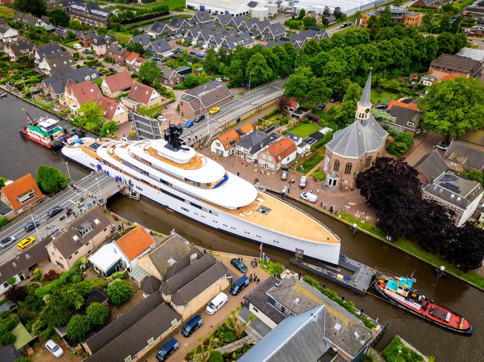 Το γιοτ, με την ονομασία Pi, μήκους περίπου 77 μέτρα, πέρασε με δυσκολία από το κανάλι, σχεδόν ακουμπώντας τα σπίτια της περιοχής.