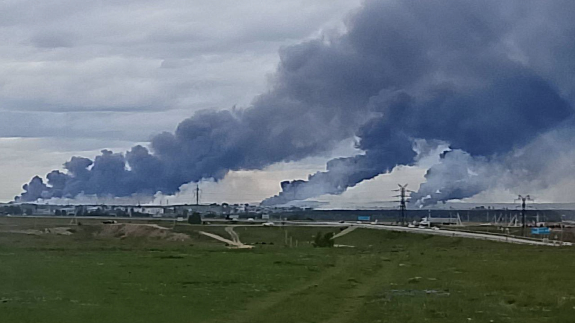 Four Tu-95 bombers and an An-22 transport plane can be seen ablaze. pic.twitter.com/GTki8t2XHl