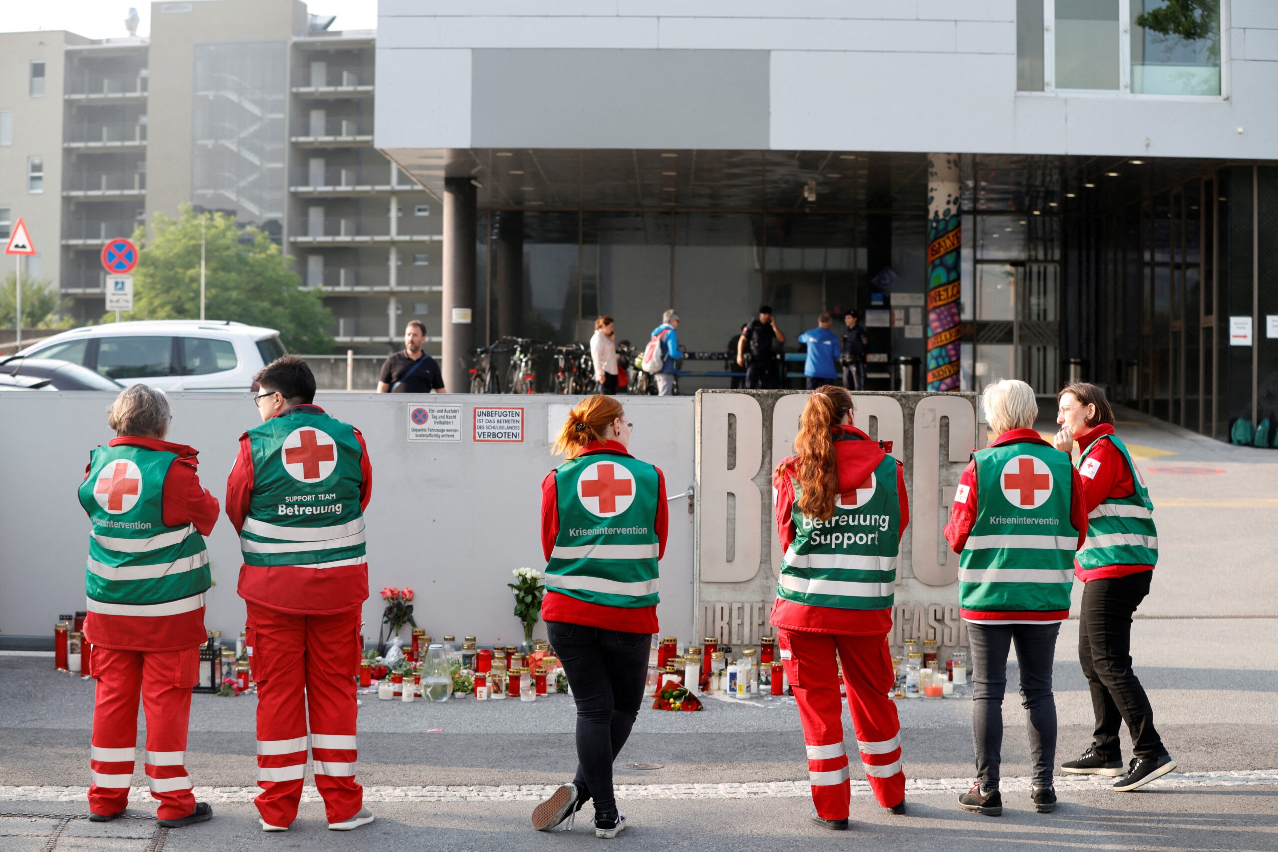 Εκατοντάδες άνθρωποι συγκεντρώθηκαν χθες στην κεντρική πλατεία του Γκρατς, δεύτερης μεγαλύτερης πόλης της Αυστρίας, στη μνήμη των θυμάτων της επίθεσης. Αλλοι άφησαν λουλούδια και κεριά έξω από το κτίριο, ενώ δεκάδες ήταν εκείνοι που έσπευσαν να δώσουν αίμα για τους τραυματίες.