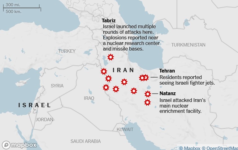 - Το Ισραήλ εξαπέλυσε επιθέσεις σε ολόκληρο το Ιράν, δηλώνοντας ότι στόχευαν την «καρδιά» του πυρηνικού προγράμματος του Ιράν