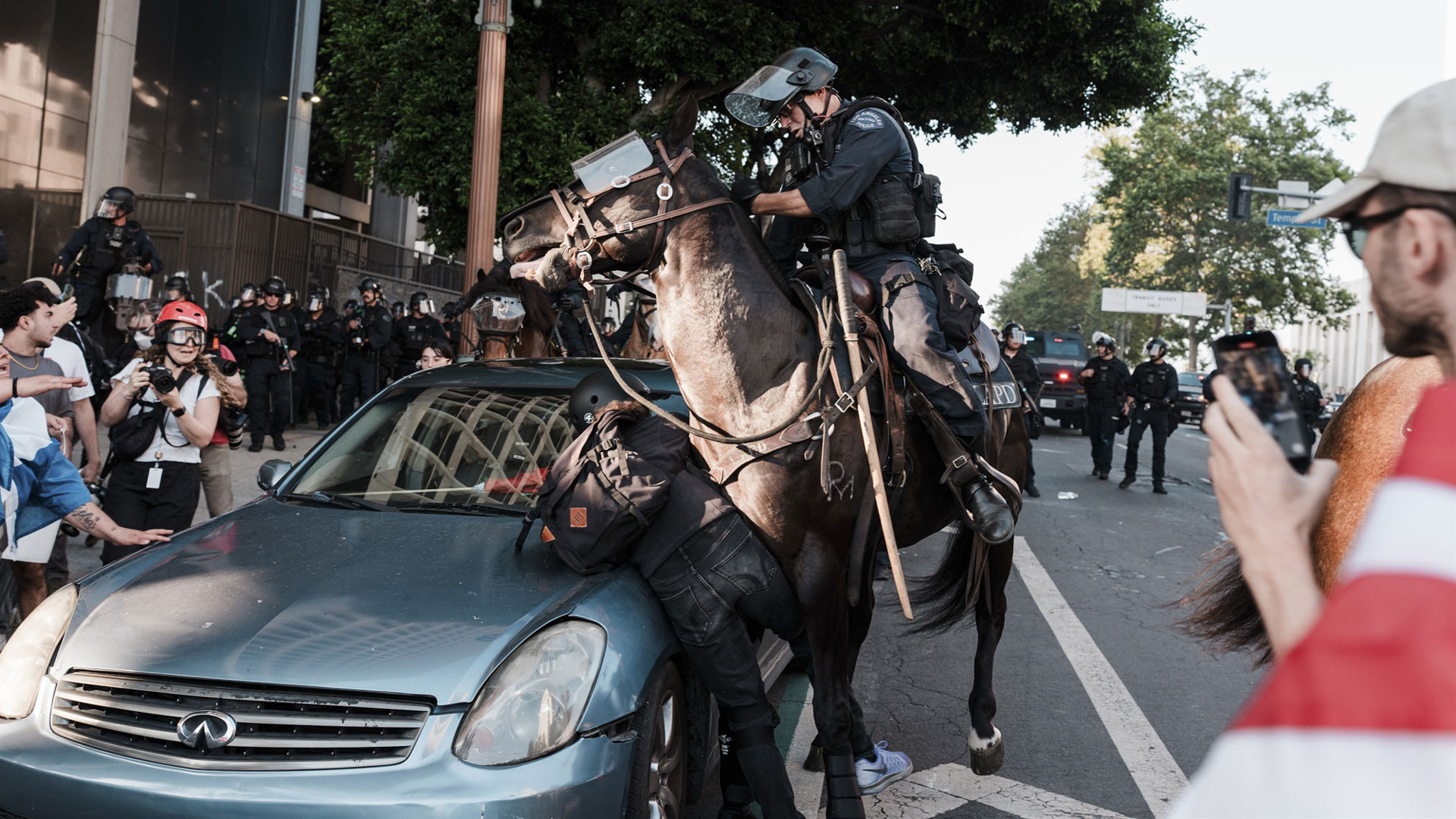 Είχε δίκιο: τις επόμενες ημέρες οι διαδηλώσεις έγιναν πιο βίαιες, ενώ επεκτάθηκαν και σε άλλες πόλεις των ΗΠΑ. Ο Τραμπ διέταξε την ανάπτυξη ακόμη 2.000 εθνοφρουρών, αλλά και –σε μια περαιτέρω κλιμάκωση– 700 πεζοναυτών στο Λος Αντζελες. Μιλώντας στη στρατιωτική βάση στο Fort Bragg την Τρίτη, ο Αμερικανός πρόεδρος χαρακτήρισε την πόλη «κολασμένο μέρος», γεμάτο «ζώα» και «αλλοδαπούς εχθρούς», από τους οποίους υποσχέθηκε να την απελευθερώσει.