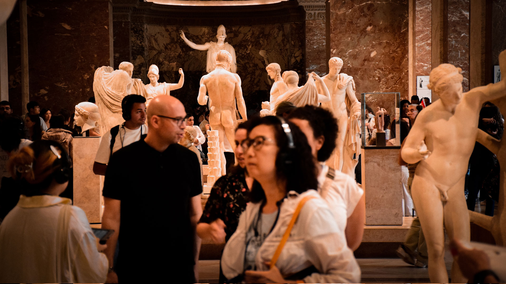 Στο επίκεντρο όλων βρίσκεται η Μόνα Λίζα, το πορτρέτο του 16ου αιώνα που σήμερα προσελκύει πλήθη σαν σε συνάντηση με διασημότητα και όχι σαν εμπειρία τέχνης. Περίπου 20.000 άνθρωποι την ημέρα στριμώχνονται στην αίθουσα Salle des États, τη μεγαλύτερη του μουσείου, απλώς για να τραβήξουν μια σέλφι με τη διάσημη κυρία πίσω από το προστατευτικό γυαλί. Η ατμόσφαιρα είναι συχνά θορυβώδης, γεμάτη σπρωξίματα, με αποτέλεσμα πολλοί να μη ρίχνουν ούτε μια ματιά στα αριστουργήματα που την πλαισιώνουν — έργα του Τιτσιάνο και του Βερονέζε που περνούν απαρατήρητα.