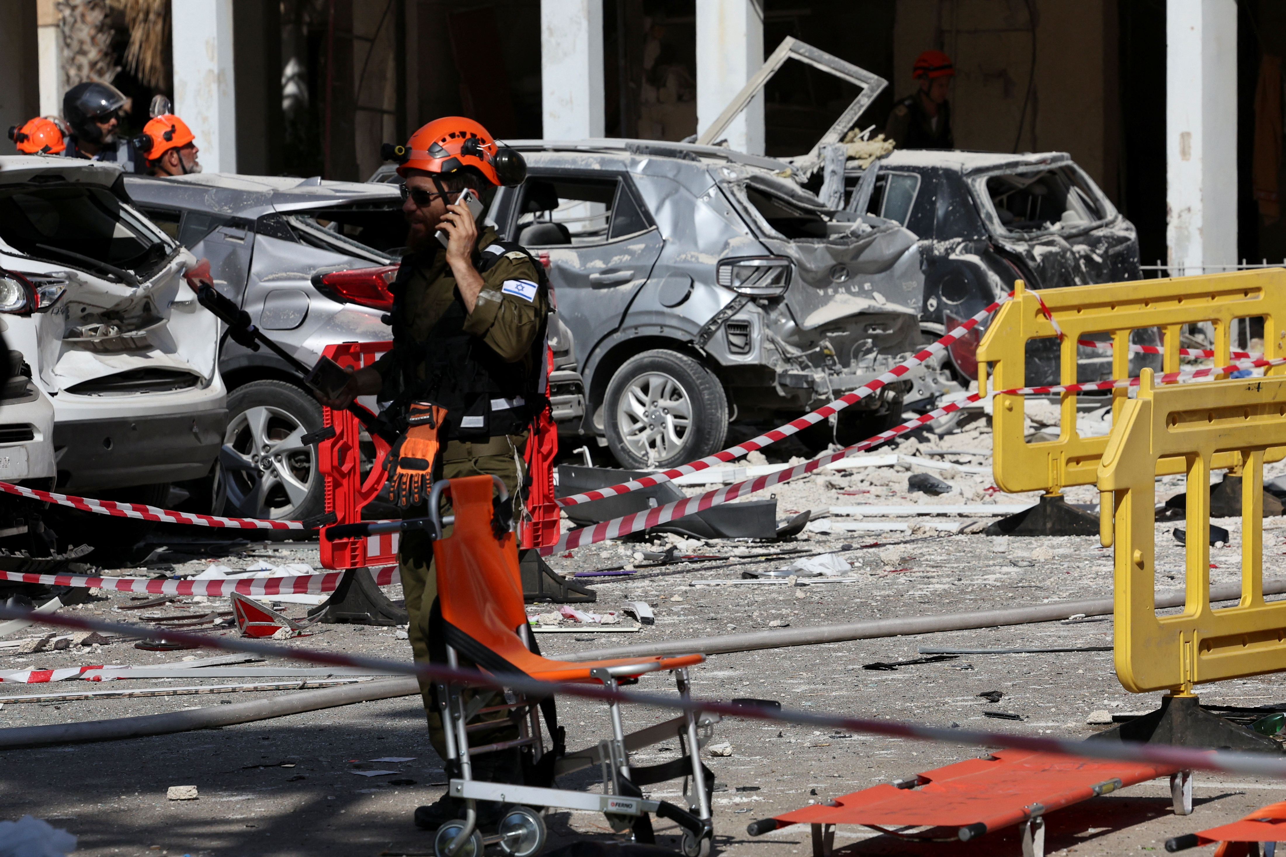 - 16:35Δυνάμεις ασφαλείας επιχειρούν στο σημείο πρόσκρουσης ιρανικού πυραύλου στην πόλη Χολόν, στο κεντρικό Ισραήλ