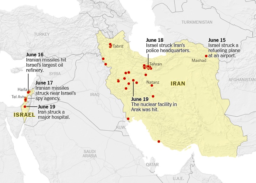 - 16:29Ο χάρτης με τα εκατέρωθεν πλήγματα σε Ιράν και Ισραήλ