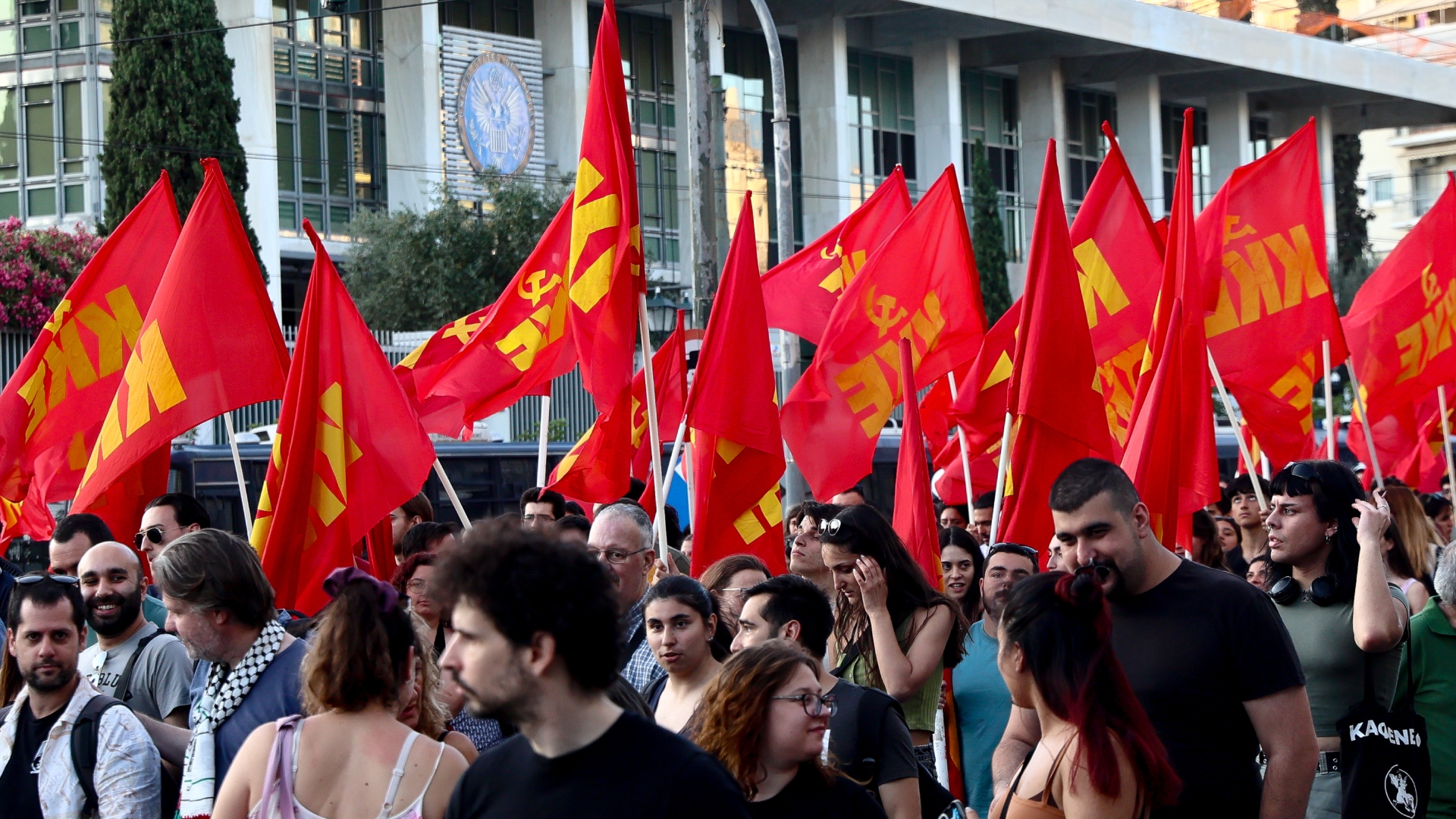 - 22:07Διαδήλωση της ΚΝΕ έξω από την Πρεσβεία των ΗΠΑ