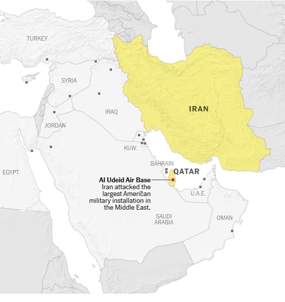 - Το Ιράν εκτόξευσε πυραύλους κατά της αμερικανικής αεροπορικής βάσης σε απάντηση για τις επιθέσεις κατά των πυρηνικών του εγκαταστάσεων το Σάββατο. Το Κατάρ ανακοίνωσε ότι όλοι οι πύραυλοι αναχαιτίστηκαν.