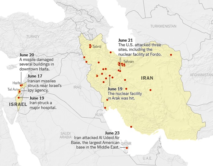 - 15:12Ο χάρτης των επιθέσεων Ιράν - Ισραήλ από τις 13 Ιουνίου