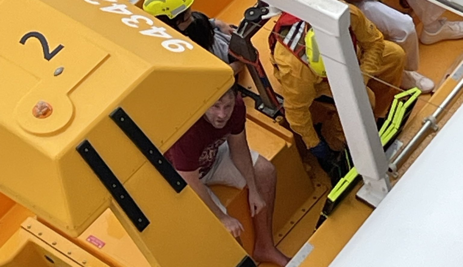 Στο πλοίο σήμανε συναγερμός έκτακτης ανάγκης, με τα μέλη του πληρώματος να κατεβάζουν σκάφος διάσωσης και να πετούν σωσίβια στο νερό.