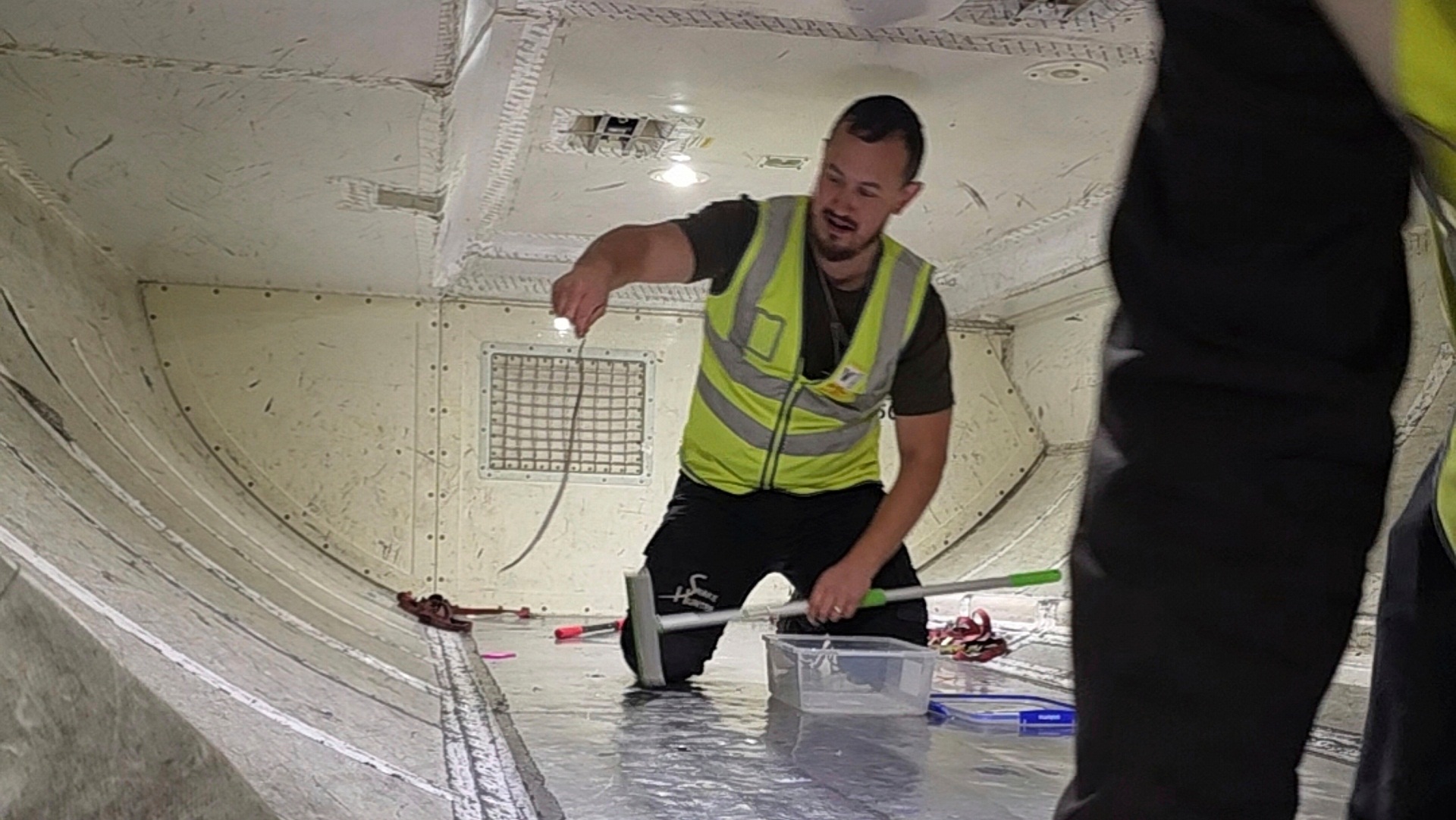 Οταν ο κ. Πέλι μπήκε στον χώρο αποσκευών, το φίδι ήταν μισοκρυμμένο πίσω από ένα πάνελ και θα μπορούσε να είχε εξαφανιστεί βαθύτερα μέσα στο αεροπλάνο.