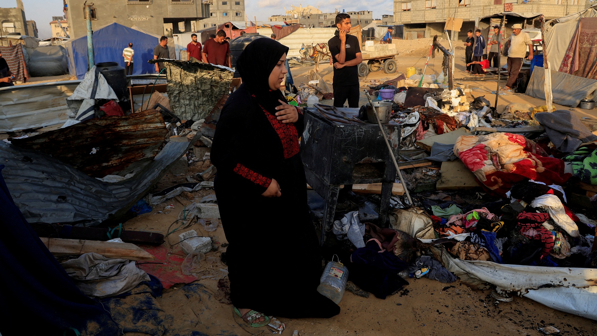 Παράλληλα στο Μαουάσι, διερχόμενοι κοίταζαν αποσβολωμένοι ό,τι απέμεινε από ισραηλινό πλήγμα εναντίον σκηνής εκτοπισμένων.