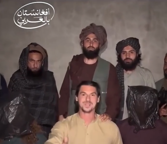Στη συνέχεια, τραβάει την κουκούλα από έναν από τους γονατιστούς άνδρες, αποκαλύπτοντας έναν χαμογελαστό λευκό άνδρα που λέει χαμογελώντας «καλώς ήρθατε στο Αφγανιστάν!».
