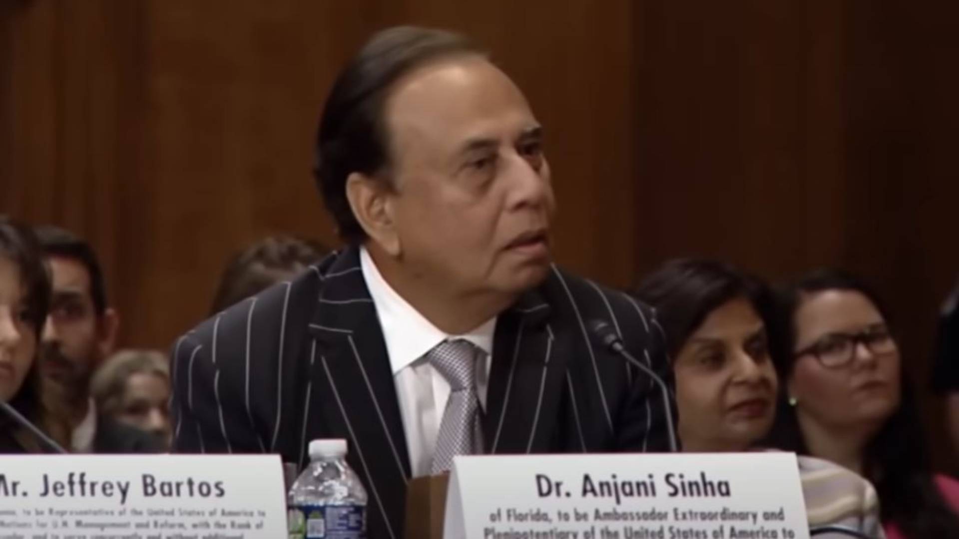 Κατά τη διάρκεια της ακρόασης από την Επιτροπή Διεθνών Σχέσεων της αμερικανικής Γερουσίας, ο Ρεπουμπλικανός γερουσιαστής Λίντσεϊ Γκράχαμ προλόγισε τον δρα Σίνχα λέγοντας πως είναι «φίλος του προέδρου Τραμπ εδώ και πάνω από μία δεκαετία».