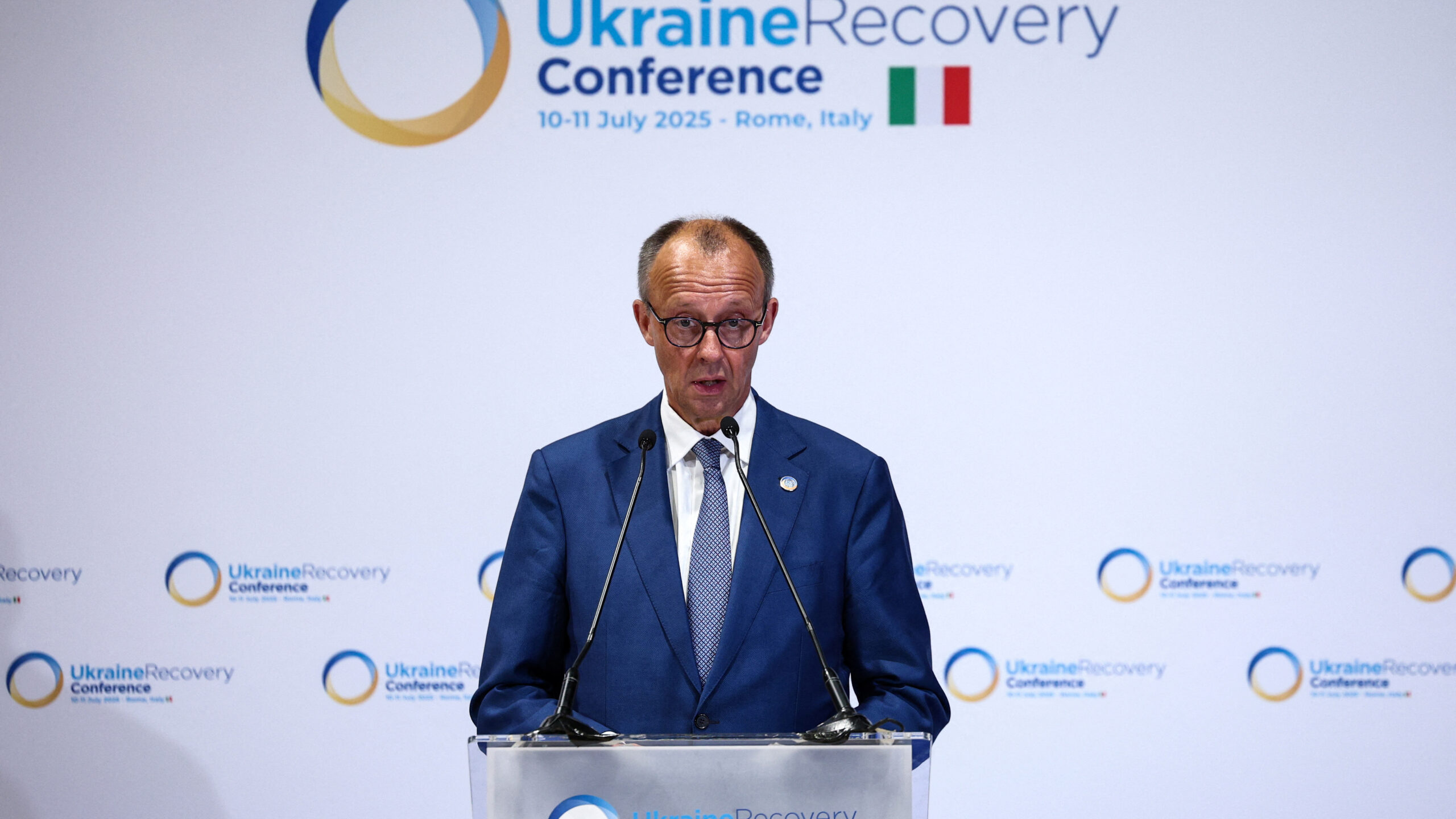 Σαφές μήνυμα στον Ντόναλντ Τραμπ να παραμείνει προσηλωμένος στο στρατόπεδο της δυτικής υποστήριξης προς την Ουκρανία απηύθυνε την Πέμπτη ο Γερμανός καγκελάριος Φρίντριχ Μερτς, κατά την έναρξη της διεθνούς διάσκεψης στη Ρώμη για την ανοικοδόμηση της χώρας.