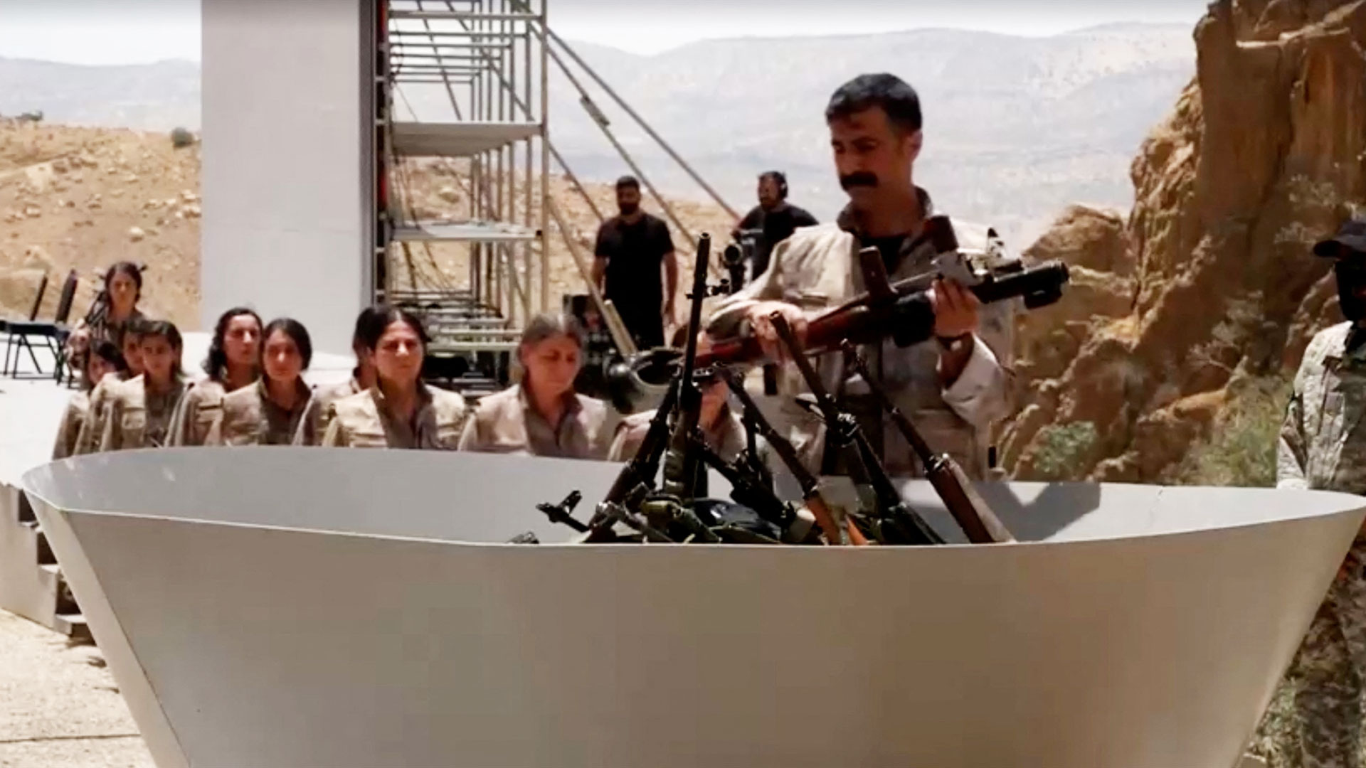 ΚΩΝΣΤΑΝΤΙΝΟΥΠΟΛΗ – ΑΝΤΑΠΟΚΡΙΣΗ. Τεράστιο βήμα προς την ειρήνευση θεωρείται η τελετή που πραγματοποιήθηκε στο βόρειο Ιράκ, με περίπου τριάντα μαχητές του PKK να καίνε και να καταστρέφουν τα όπλα τους.