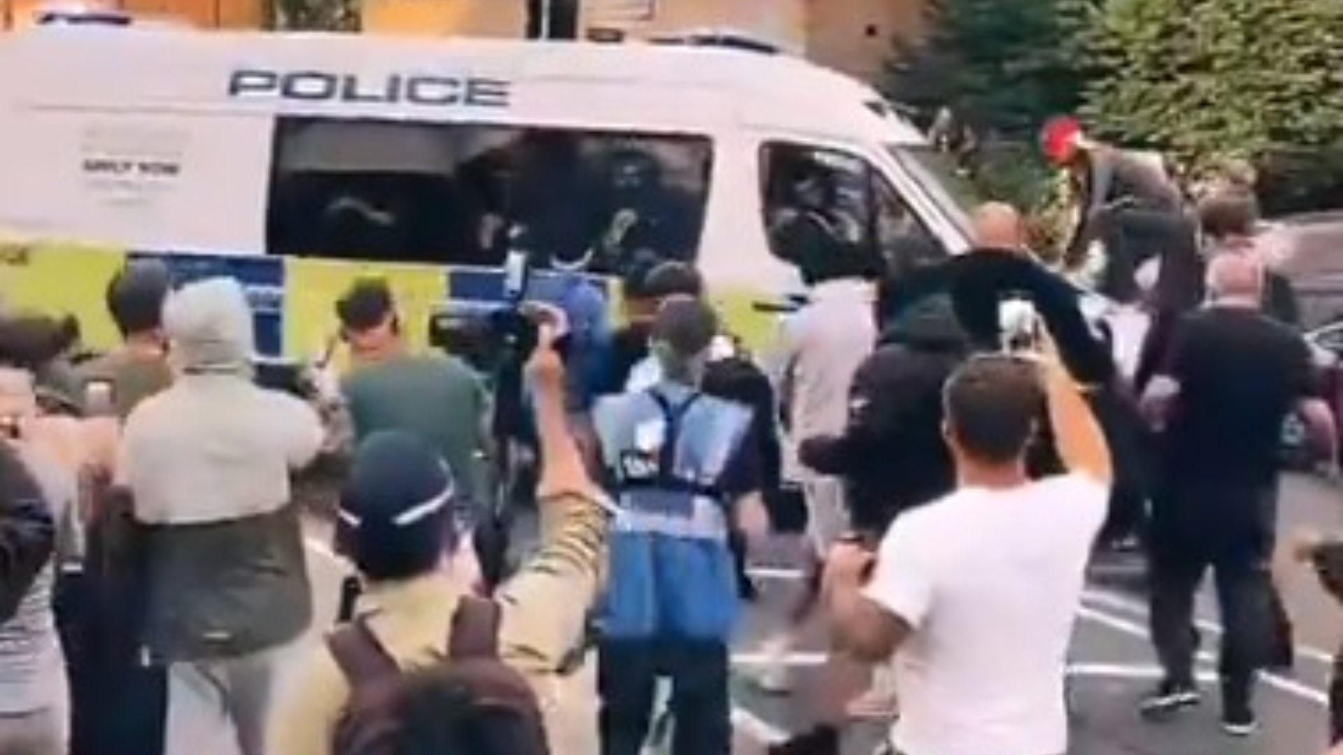 Βίντεο που αναρτήθηκαν σε ιστοτόπους κοινωνικής δικτύωσης δείχνουν κουκουλοφόρους διαδηλωτές να εκτοξεύουν αντικείμενα, να σκαρφαλώνουν σε βανάκια της αστυνομίας και να επιτίθενται στις δυνάμεις της τάξης.
