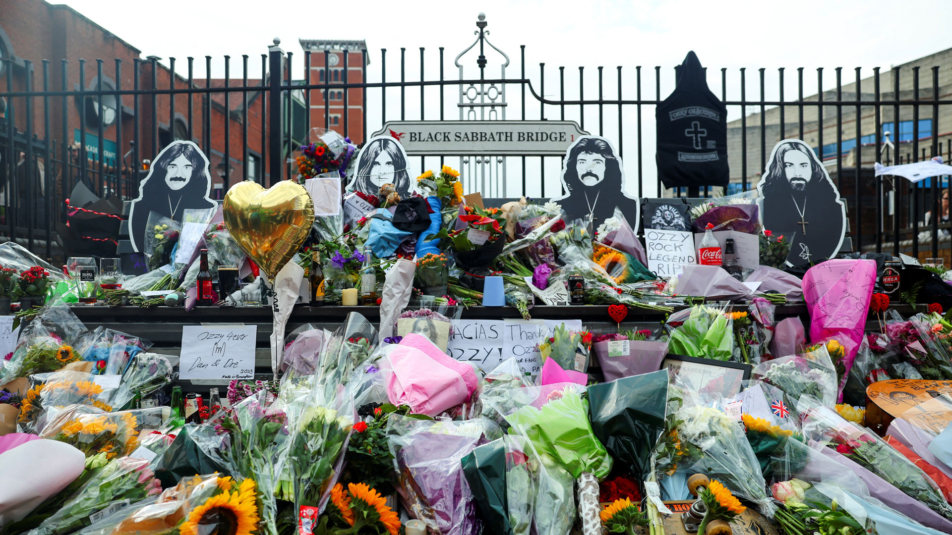 Πλήθος κόσμου άφησε λουλούδια σε ένα παγκάκι και σε μια γέφυρα στην κεντρική Αγγλία, που φέρουν το όνομα των Black Sabbath, του συγκροτήματος με το οποίο ο Οσμπορν καθιέρωσε τη heavy metal μουσική στα τέλη της δεκαετίας του 1960.