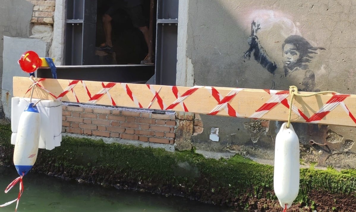 Μια ξεθωριασμένη τοιχογραφία του Banksy στη Βενετία αφαιρέθηκε από κτίριο για αποκατάσταση.