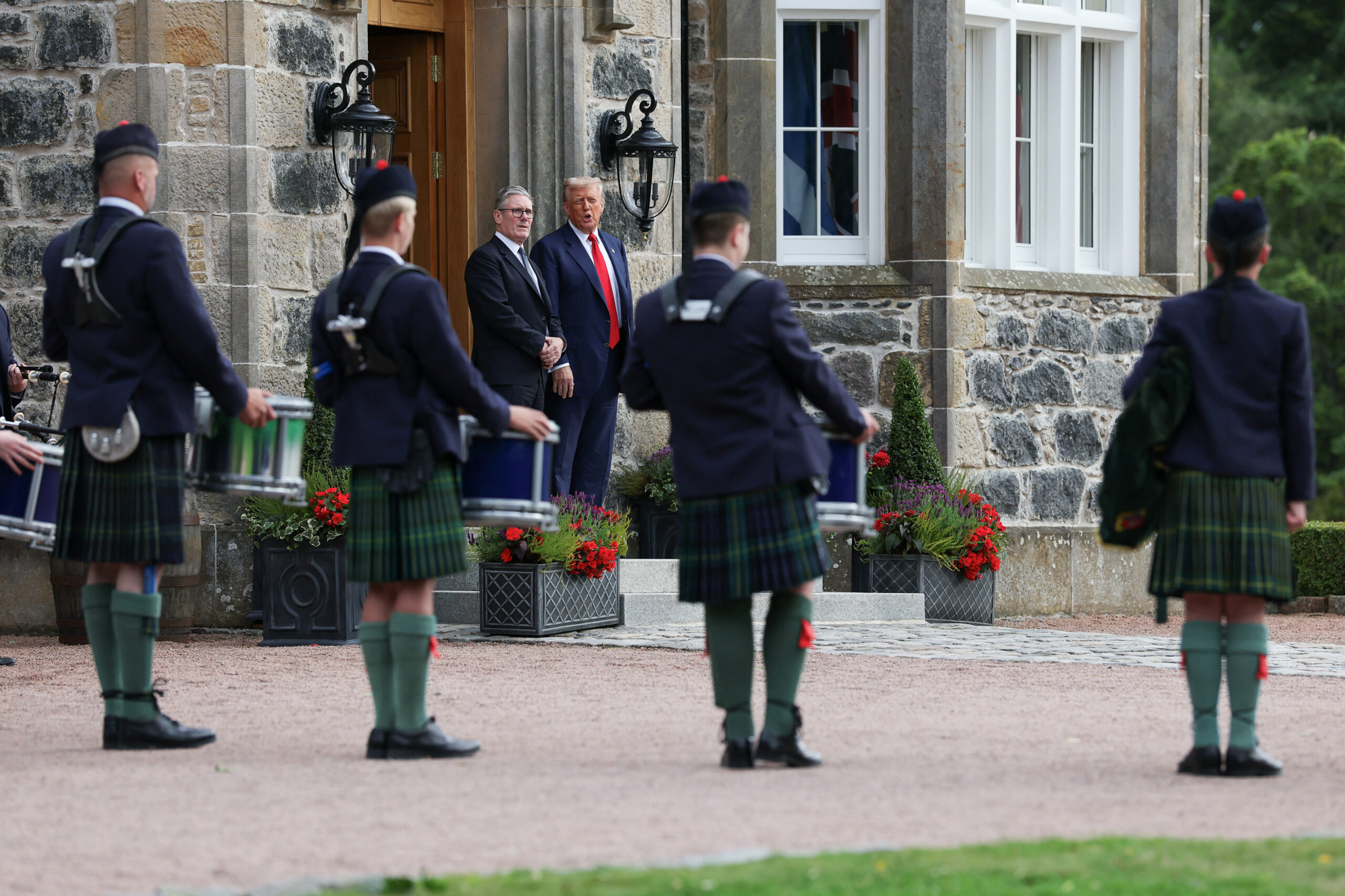 Ο Ντόναλντ Τραμπ έμοιαζε με τον τελευταίο βασιλιά της Σκωτίας. Υπό τον ήχο της γκάιντας, ο Αμερικανός πρόεδρος καλωσόρισε τον Κιρ Στάρμερ σε σκωτσέζικο «παλάτι» του γκολφ στην πατρίδα της μητέρας του. Ο Βρετανός πρωθυπουργός έφτασε χθες, Δευτέρα, ως φιλοξενούμενος και ικέτης στην ίδια του τη χώρα, σύμφωνα με το CNN.