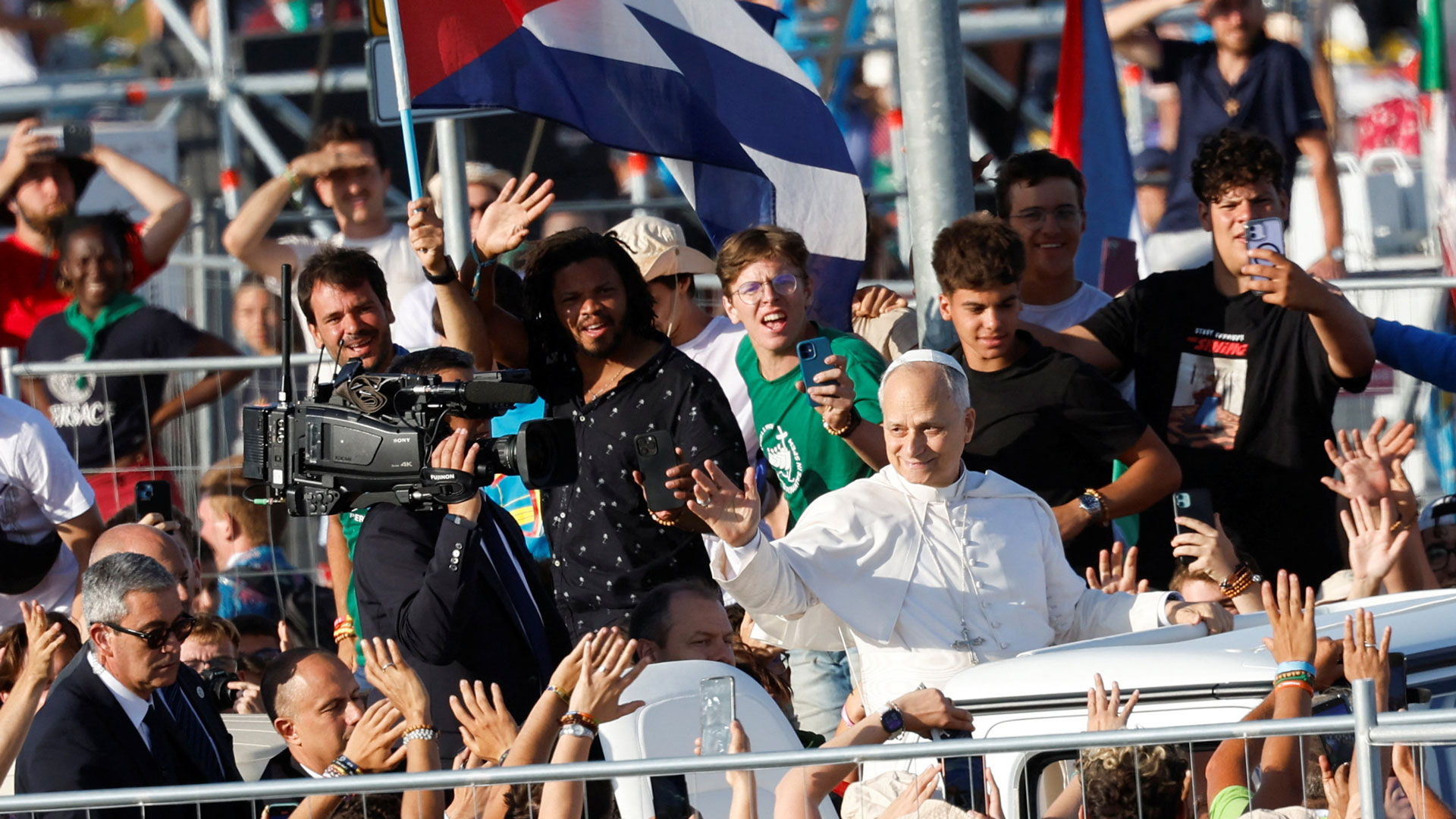 Ο πάπας Λέων ο ΙΔ‘ τέλεσε σήμερα λειτουργία σε υπαίθριο χώρο, έξω από το κέντρο της ιταλικής πρωτεύουσας, την οποία παρακολούθησε πάνω από ένα εκατομμύριο καθολικών νέων από όλο τον κόσμο.